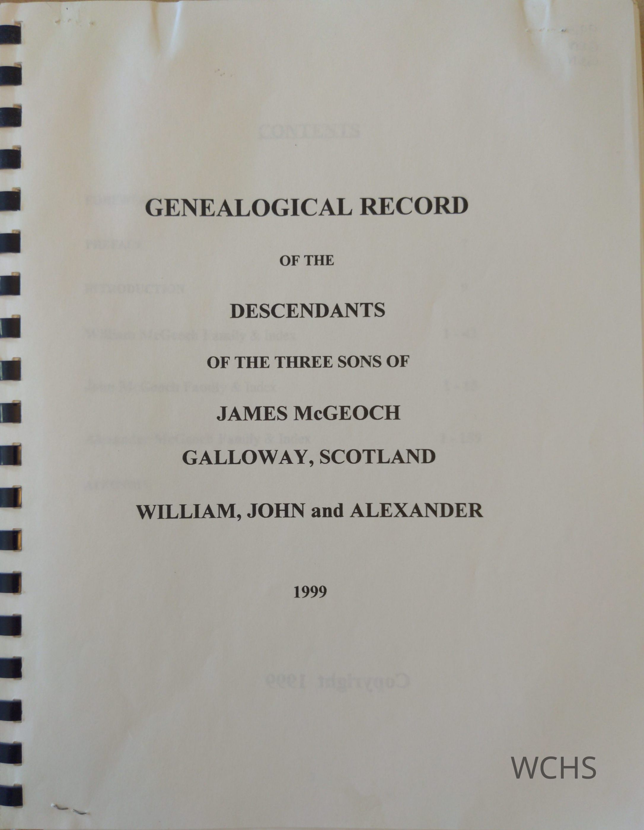 Genealogical Record Of the Descendants of the Three Sons of James McGeoch Galloway, Scotland William, John and AlexanderEntry/Object ID