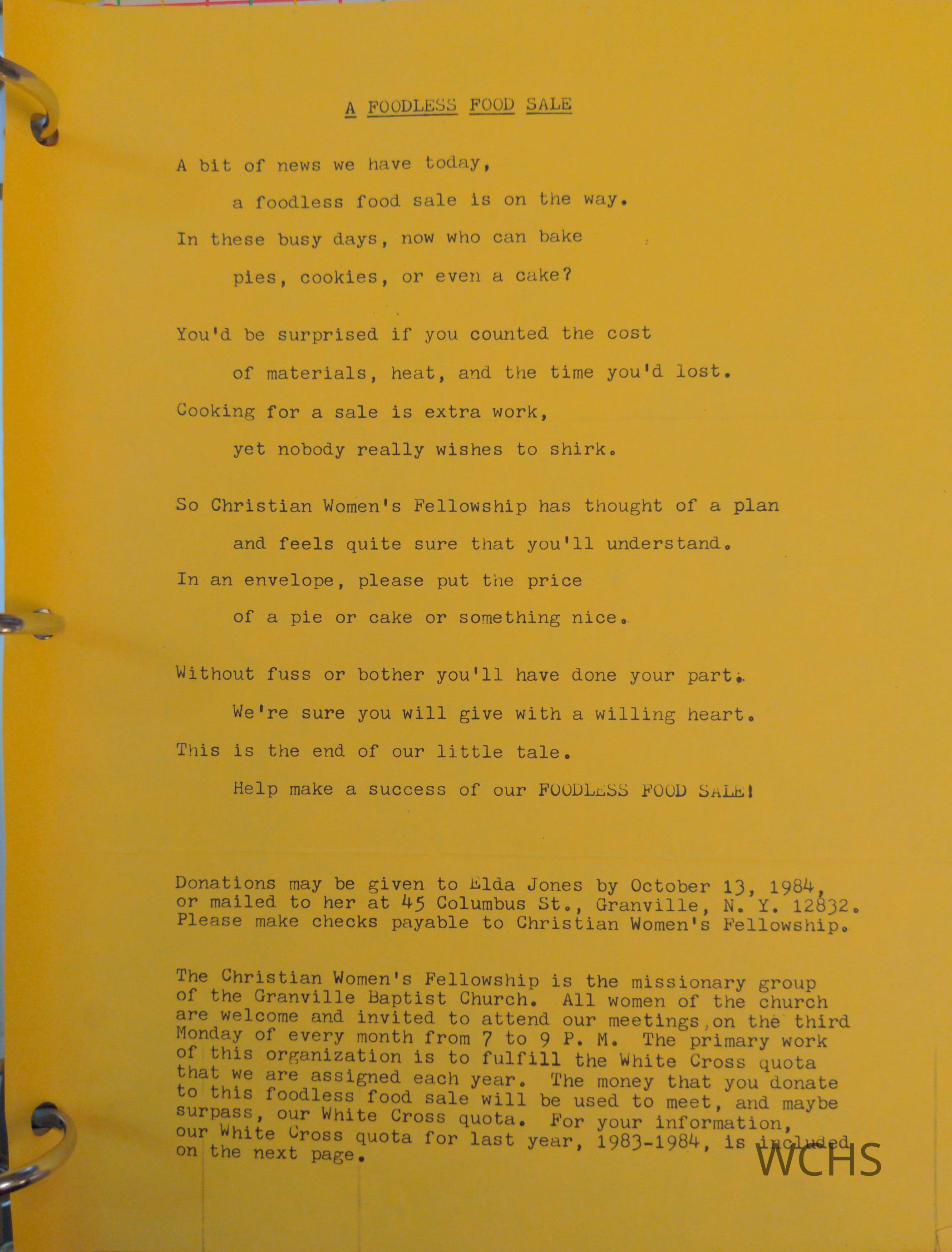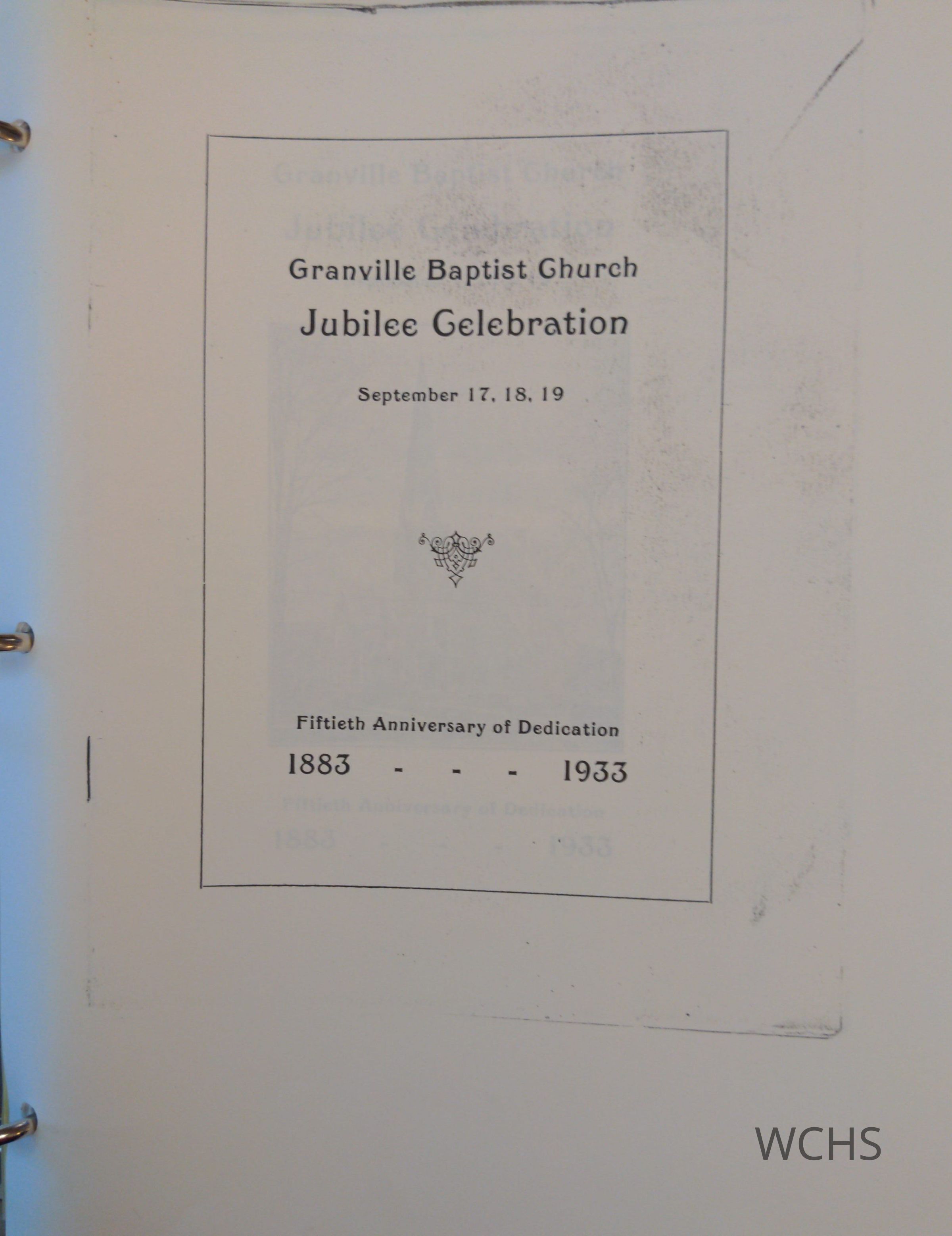 Copy of Granville Baptist Church Jubilee Celebration brochure, copies of newspaper articles regarding Celebration, excerpts of Church records, selected annual reports and selected membership list.