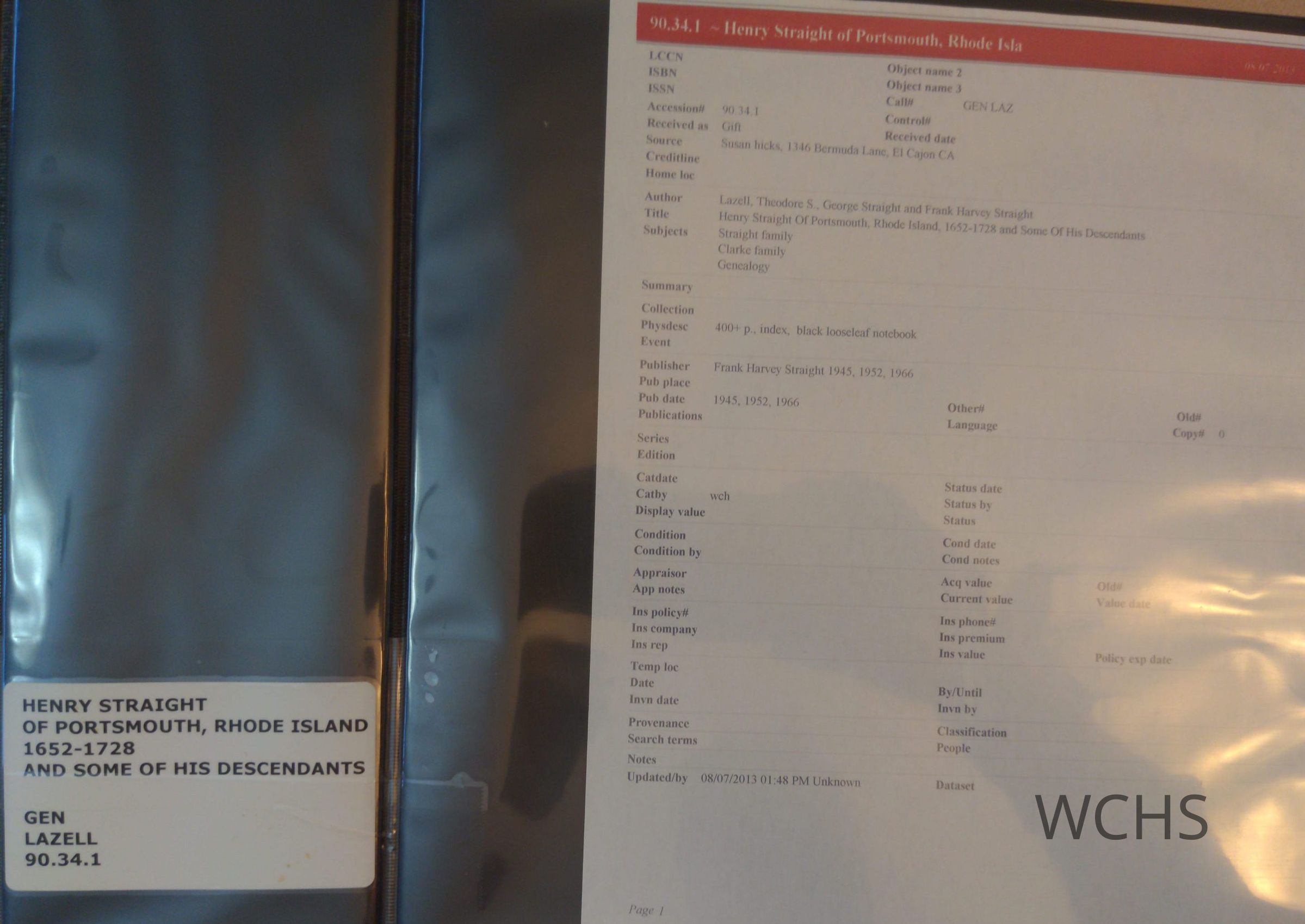Henry Straight Of Portsmouth, Rhode Island, 1652-1728 and Some Of His DescendantsEntry/Object ID