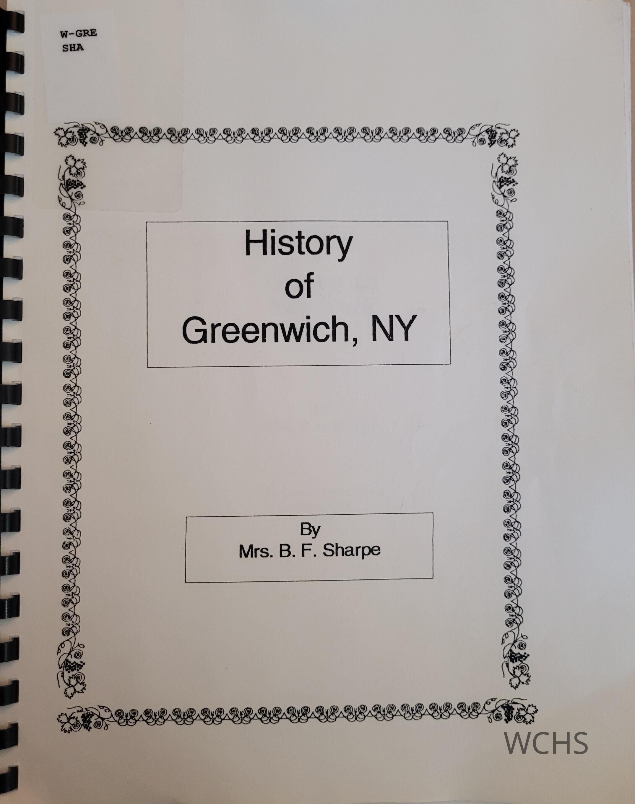 By Mrs. B.F. Sharpe. Originally published in 1909 this short history of the town of Greenwich describes the initial settlement of the town and its early pioneers. Also covered are the early villages of Whipple City and Union Village. Businesses, churches, schools, railroads, physicians, lawyers and cemeteries are all included in this history. Many names of early residents up until 1909. Indexed 57 pages.Publication Details