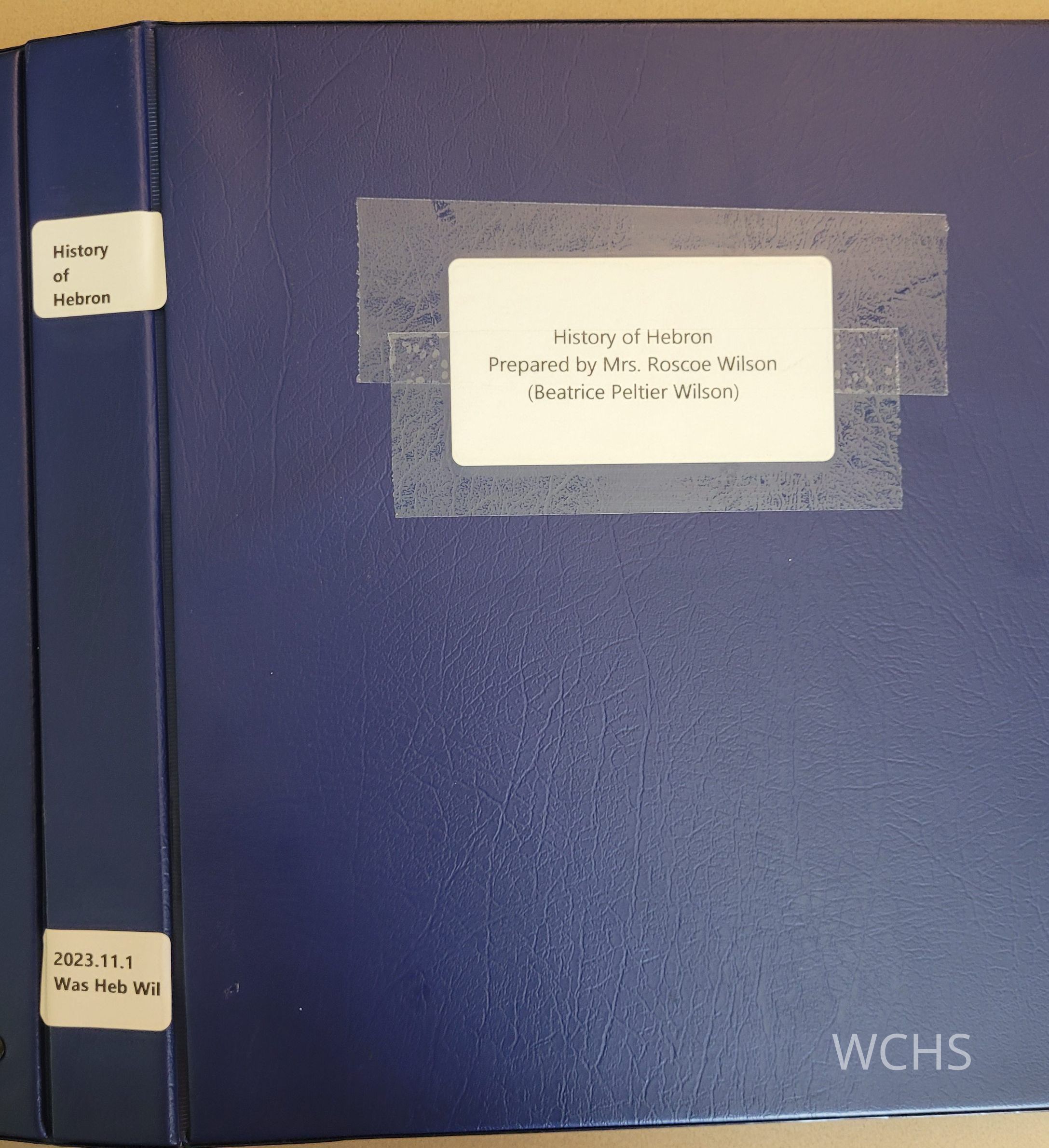 History of Hebron prepared by Beatrice Peltier WilsonEntry/Object ID