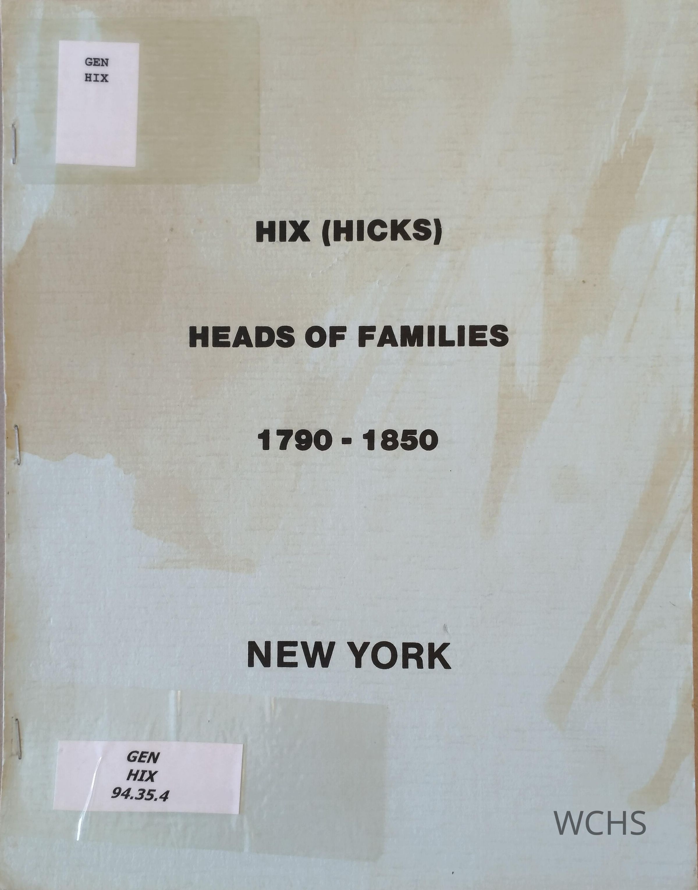 Hix (Hicks) Heads Of Families 1790-1850: New YorkEntry/Object ID