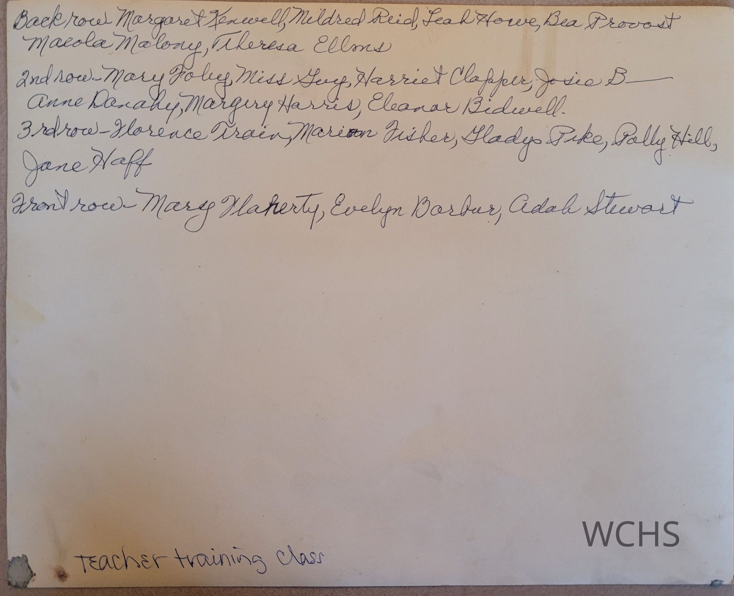 Third Row: Florence Train, Marian Fisher, Gladys Pike, Polly Hill, Jane Haff
