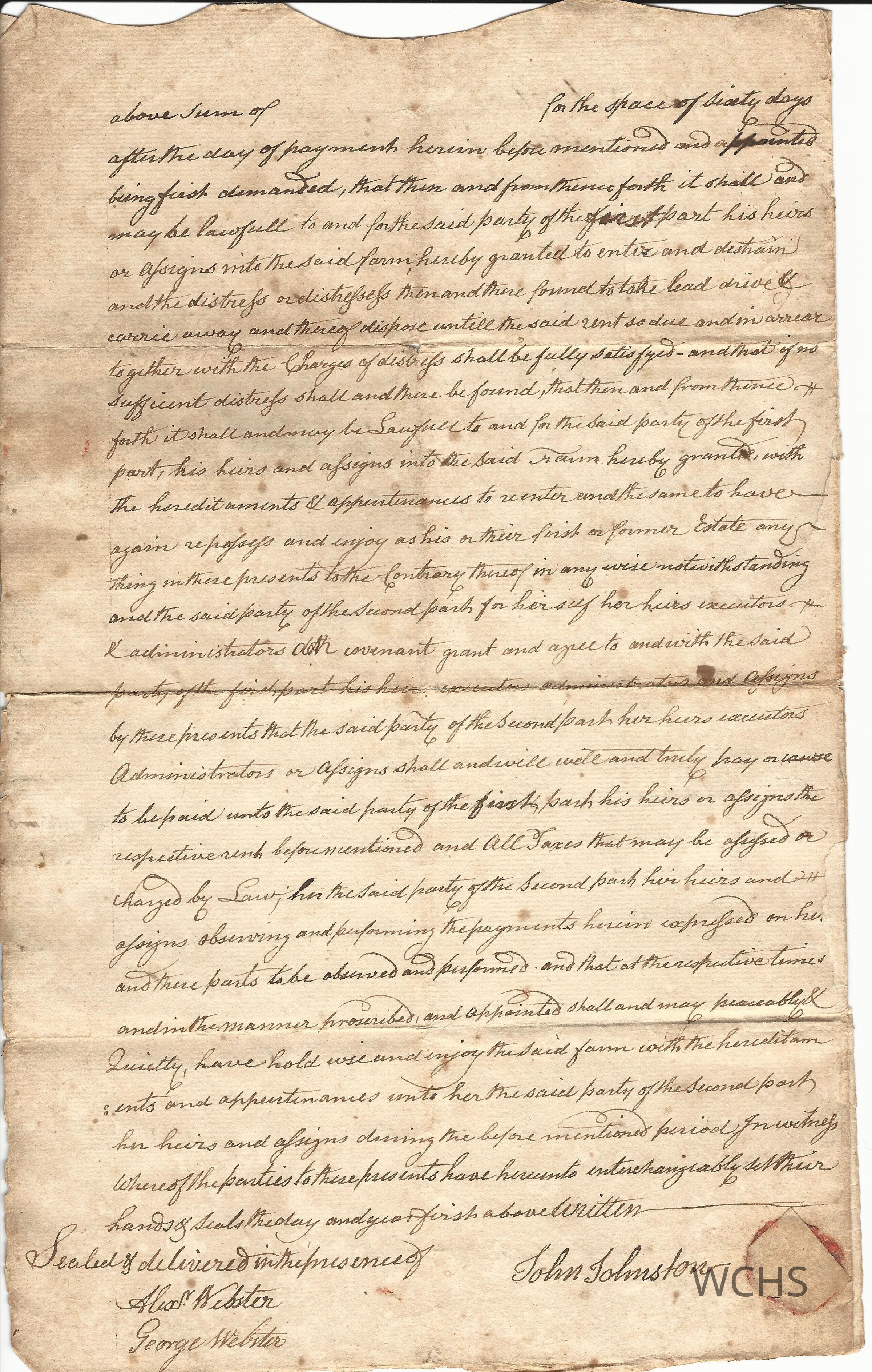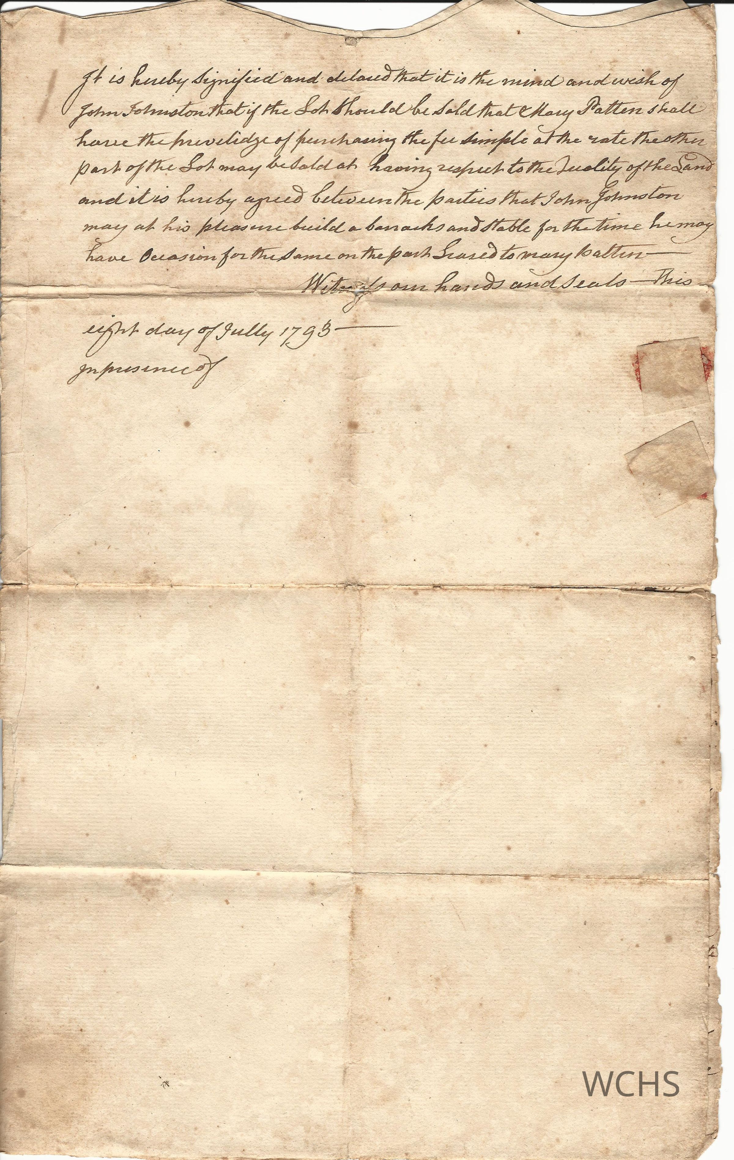Indenture Between John Johnston and Mary Patten, 1791, Argyle