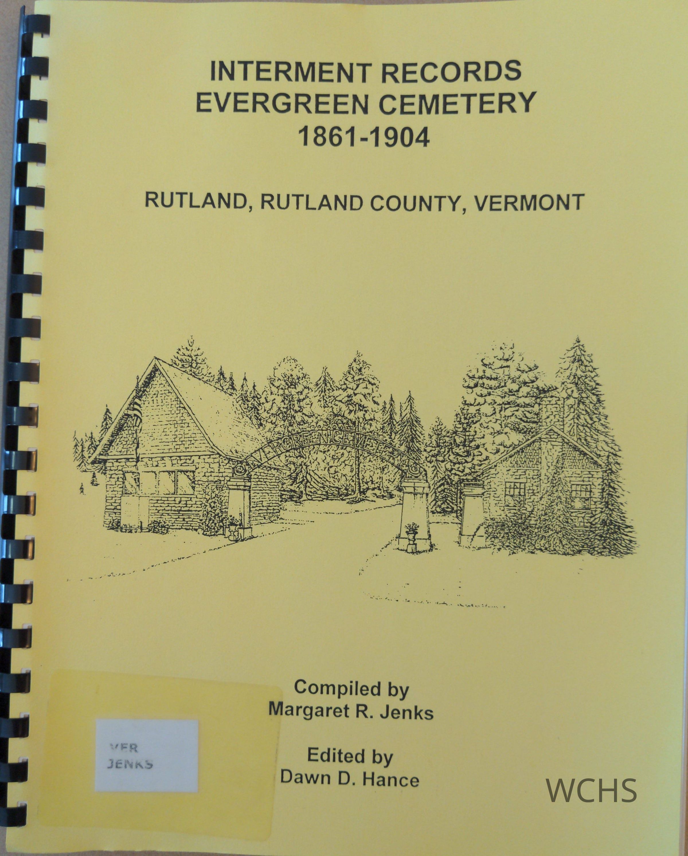 Thie book includes a map, the history of Rutland Evergreen Cemetery, burials moved to the cemetery, past superintendents and interment records, 1861 - 1904.
