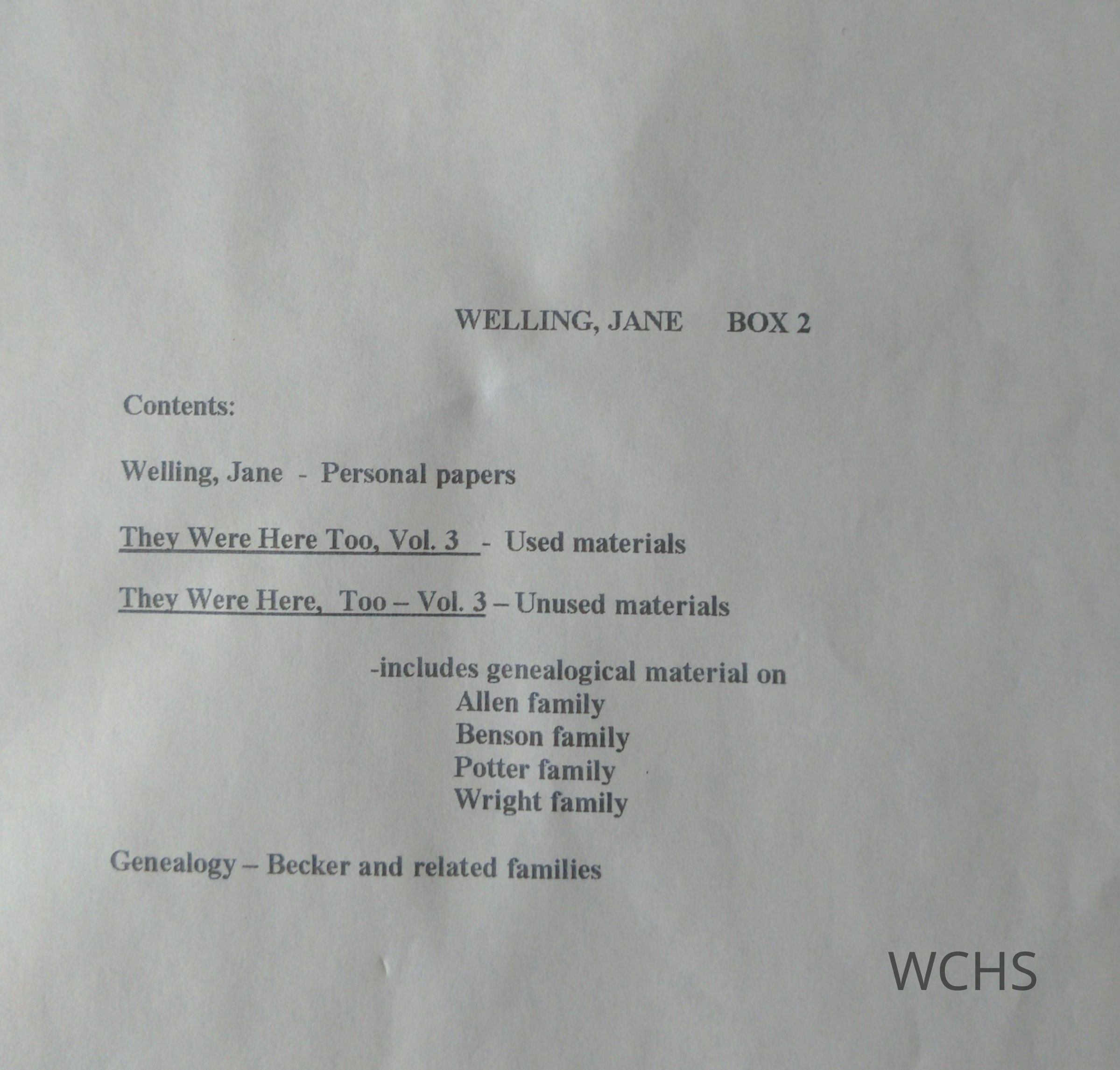 Includes correspondence on genealogies, newspaper clippings, and Dr. Welling's personal photographs. Includes Allen, Benson, Potter and Wright family information NOT used in Volume III.Publication Details