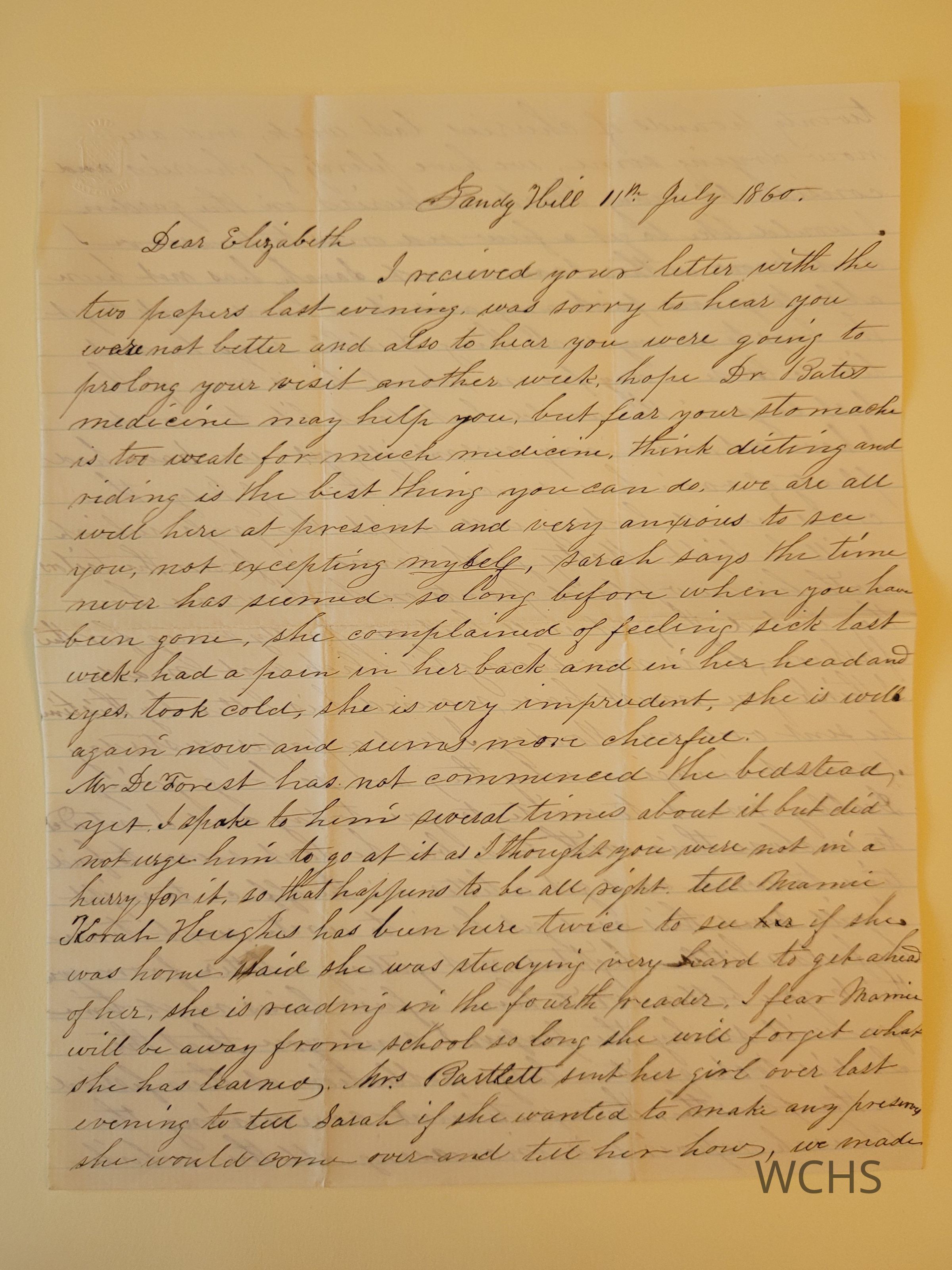 Letter to Elizabeth Teller from her husband Frank Teller of Sandy Hill, New York July 1860Entry/Object ID