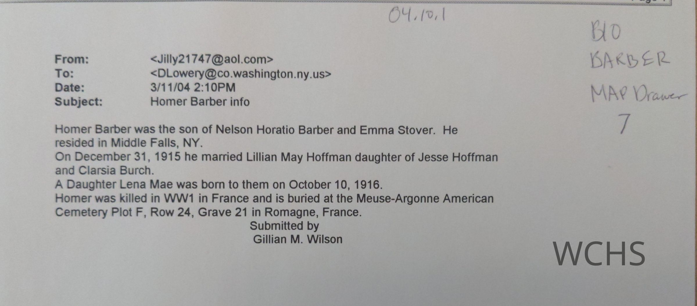 Not only is this information concerning Homer Barber but it is a source of information on finding out about other American casualties of World War I.