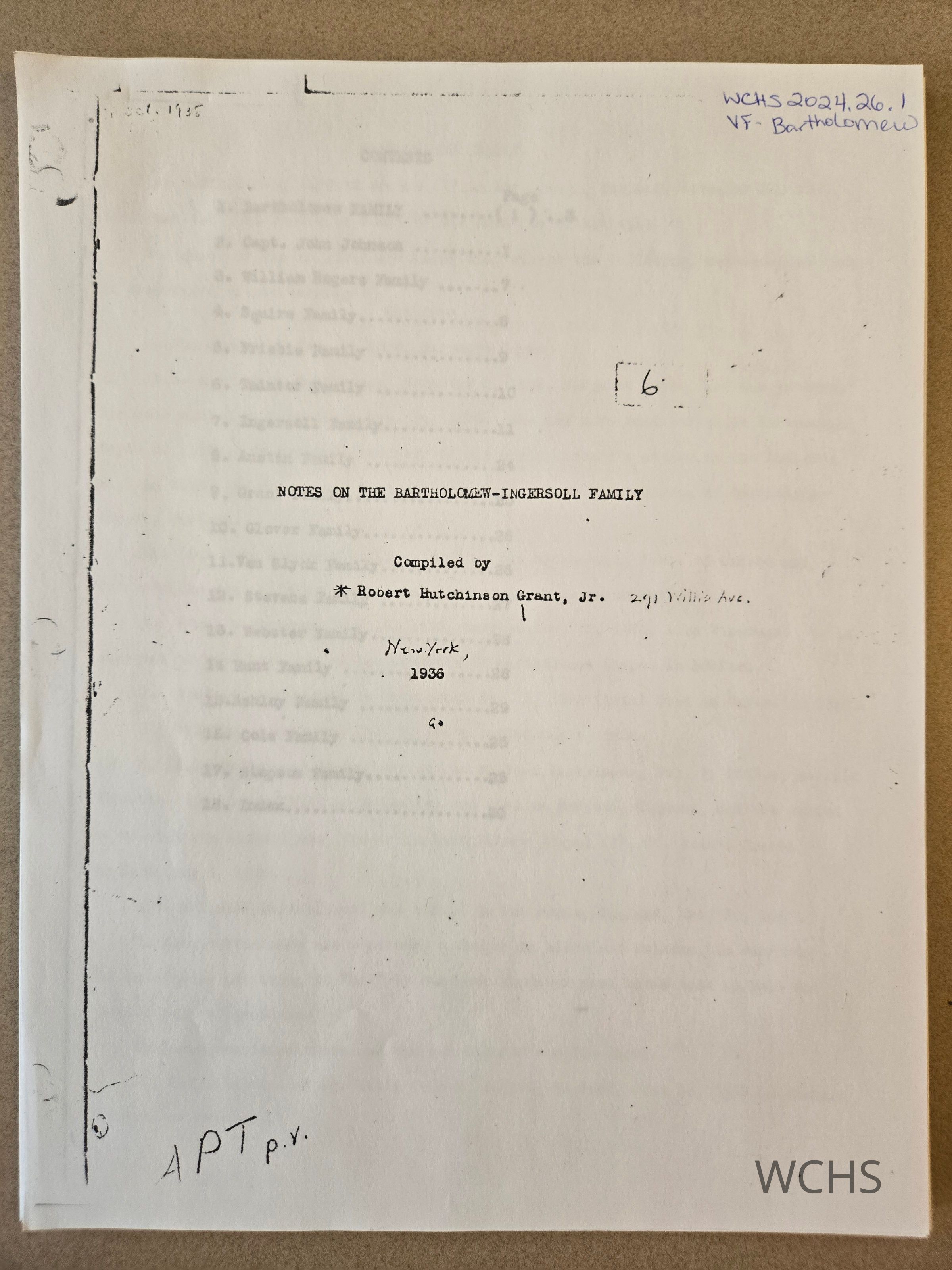 Photocopy of 1936 publication. Compiled by Robert Hutchinson Grant, Jr.