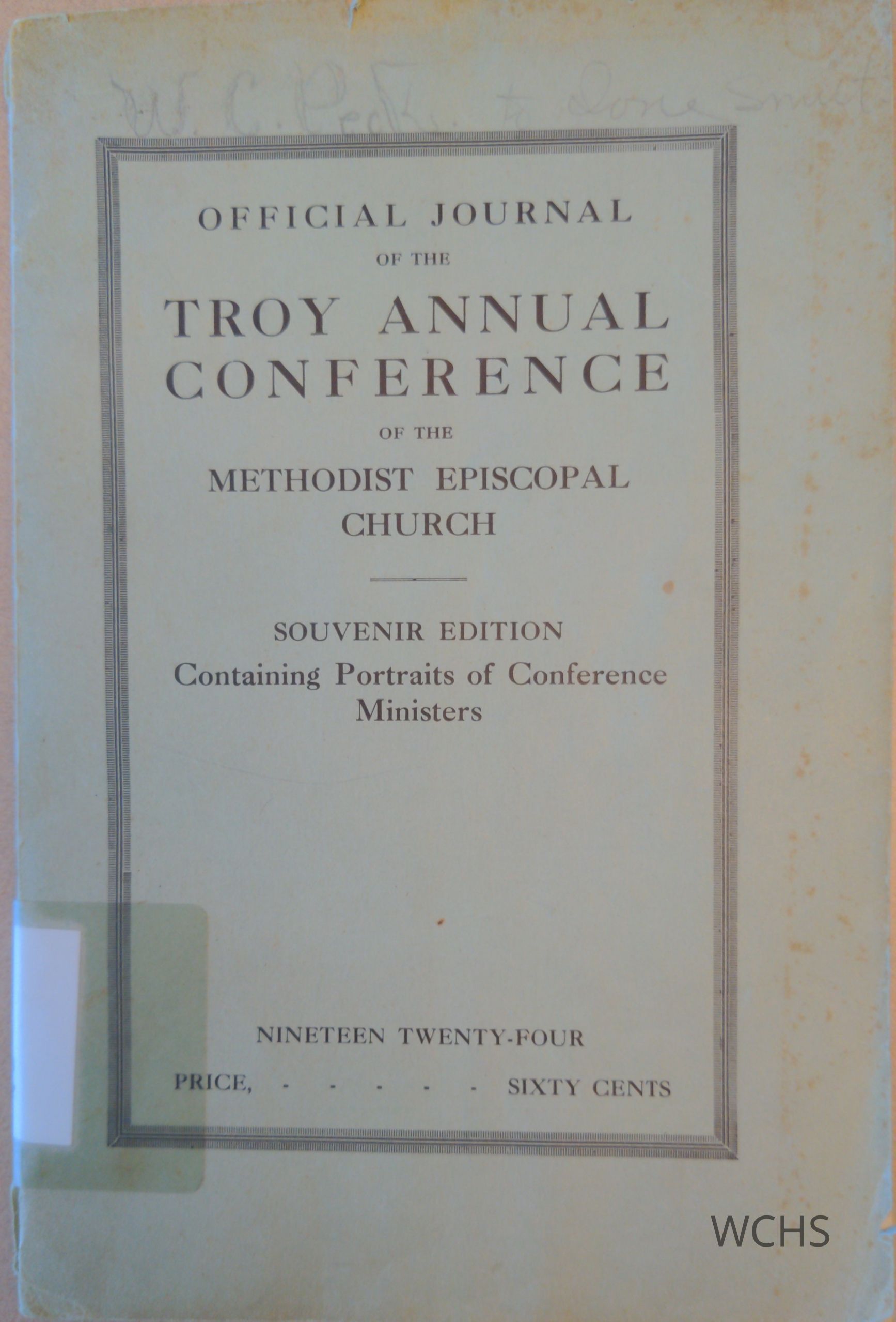 This is souvenir edition includes only pages 381 thru 507 of Journal. Includes descriptions of Washington County pastors and a map of the Troy Conference 1924, from Quebec to Columbia County.