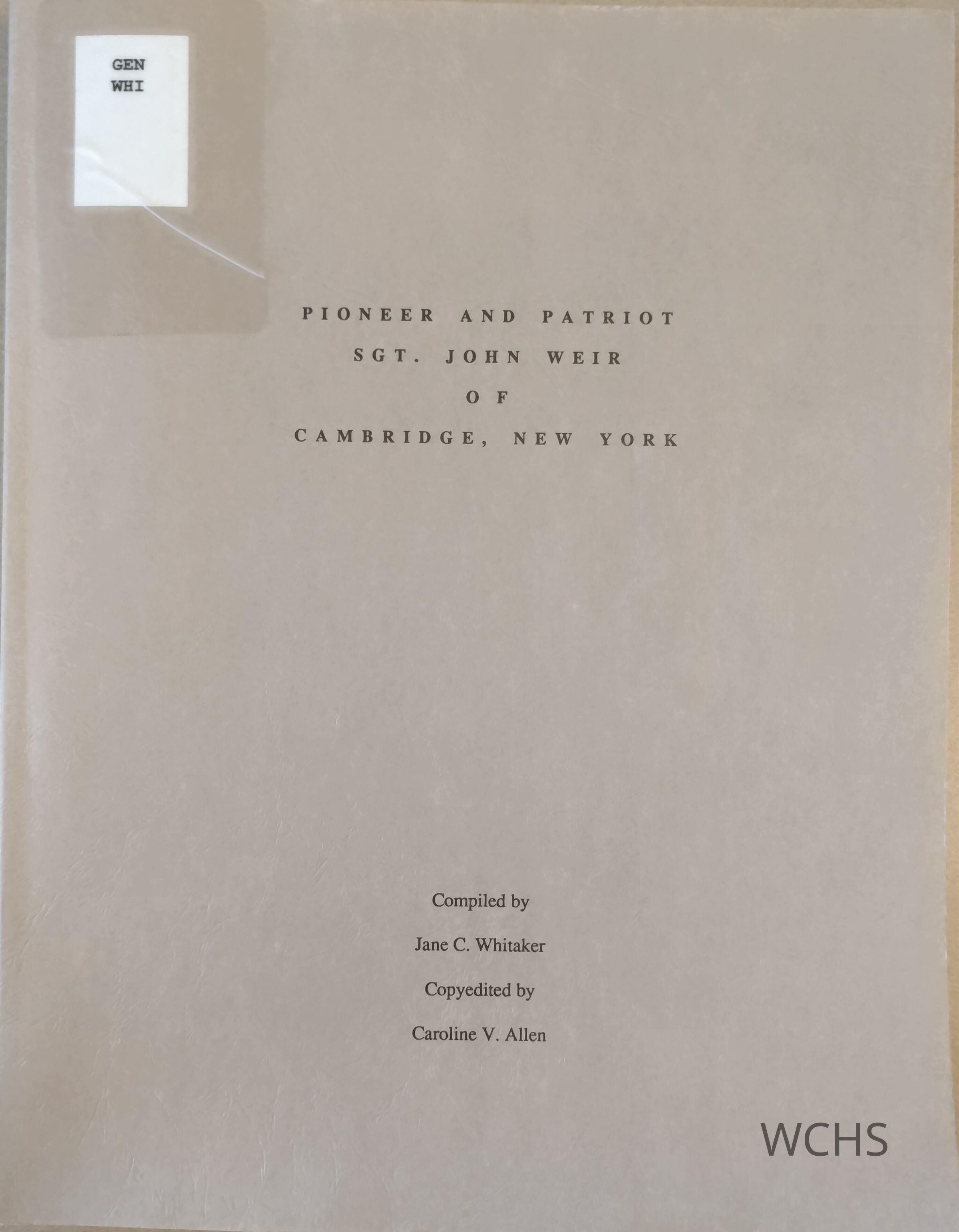 Pioneer And Patriot Sgt. John Weir Of Cambridge, New York