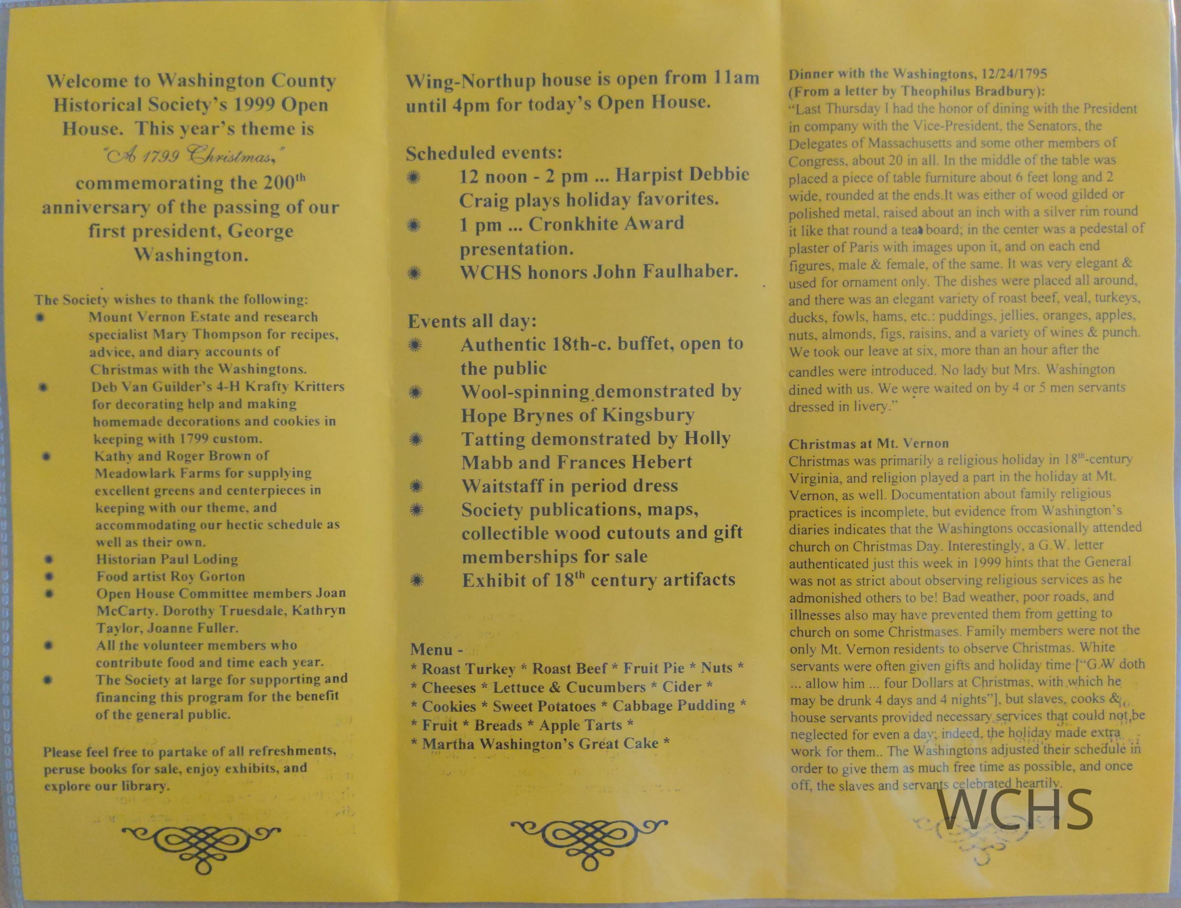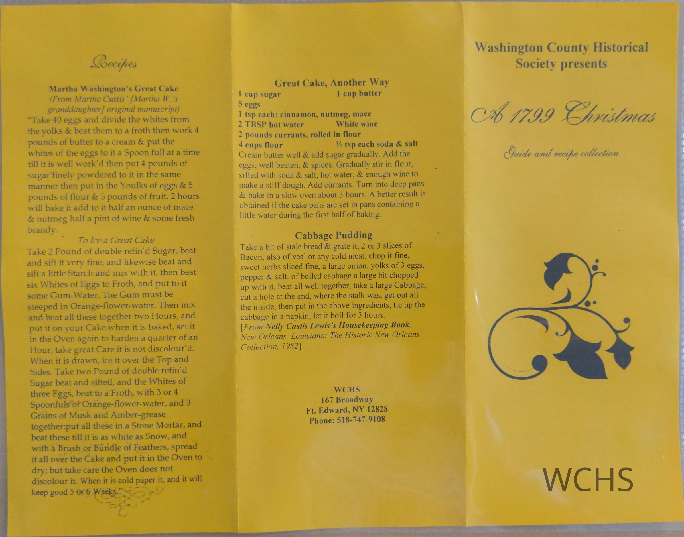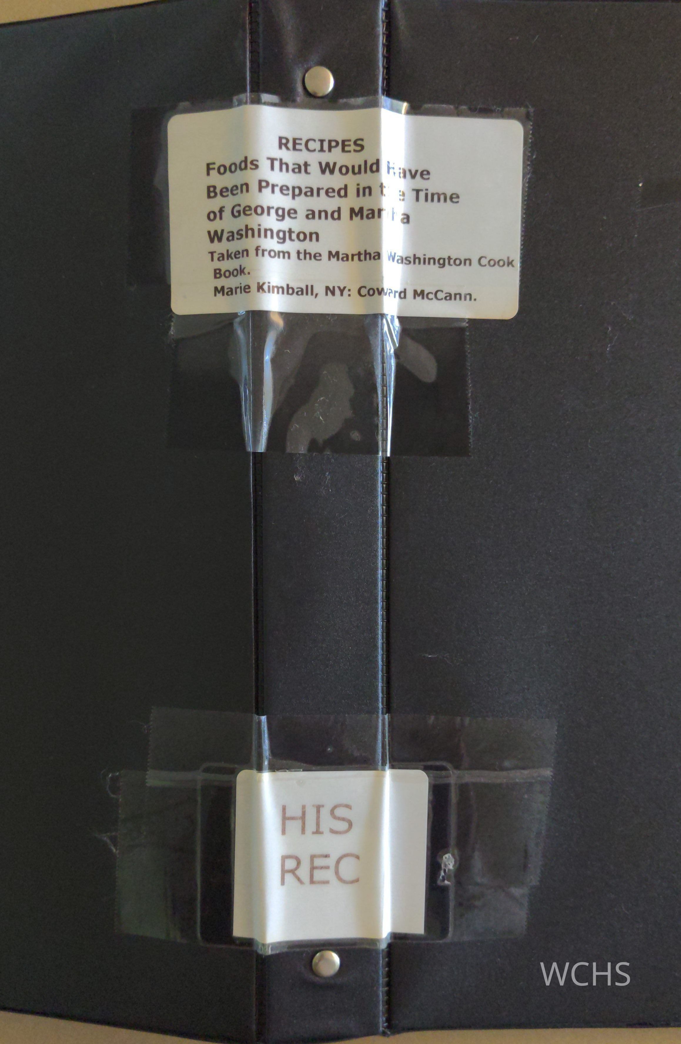 These photocopied recipes were taken from The Martha Washington Cookbook, by Marie Kimball, and some were used to prepare food for the WCHS Holiday Open House, 12/4/98.