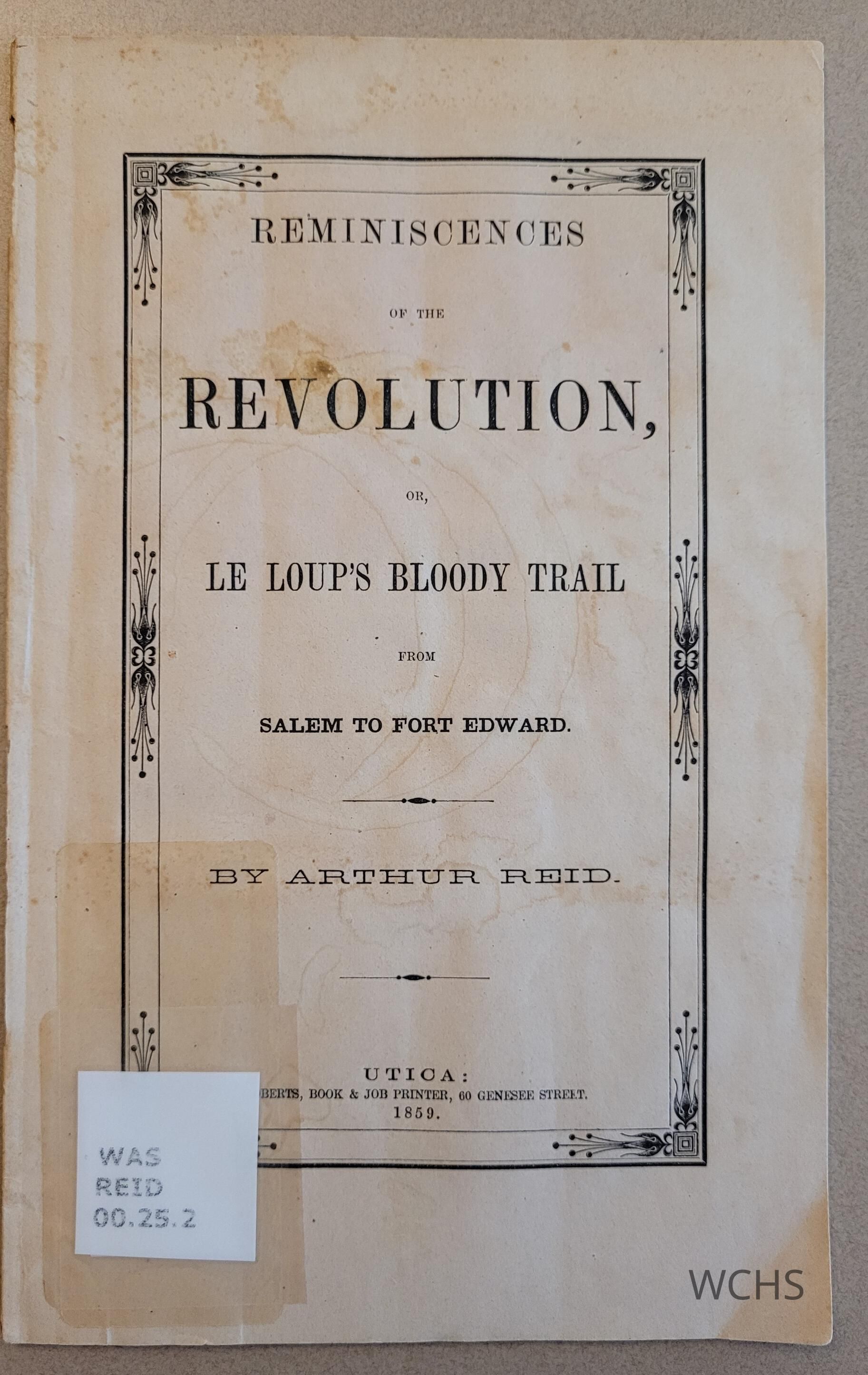Reminiscences of the Revolution, Or, Le Loup's Bloody Trail From Salem to Fort Edward