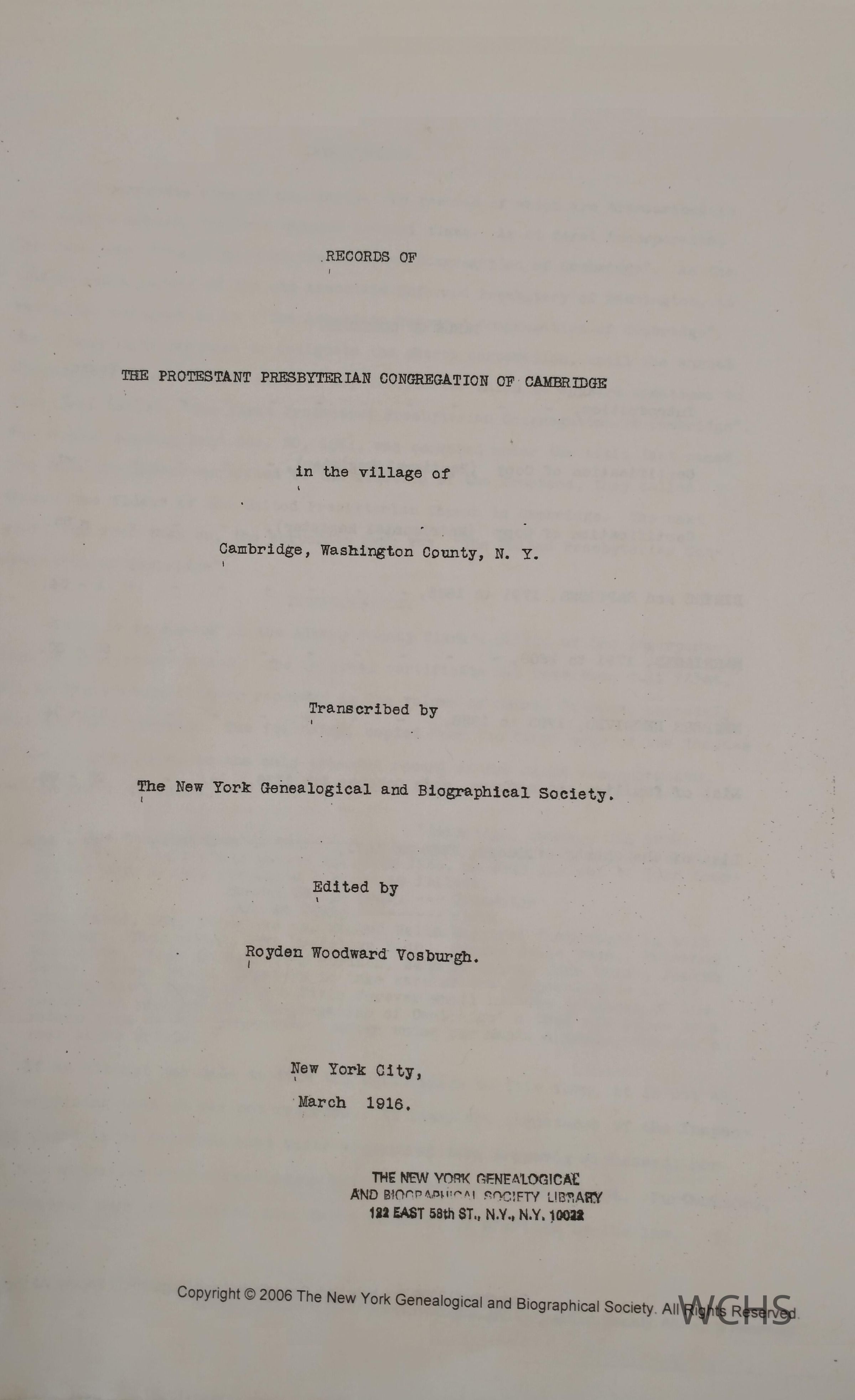 Report of the Protestant Presbyterian Congregation of Cambridge to the Village of Cambridge, Washington County, NYEntry/Object ID