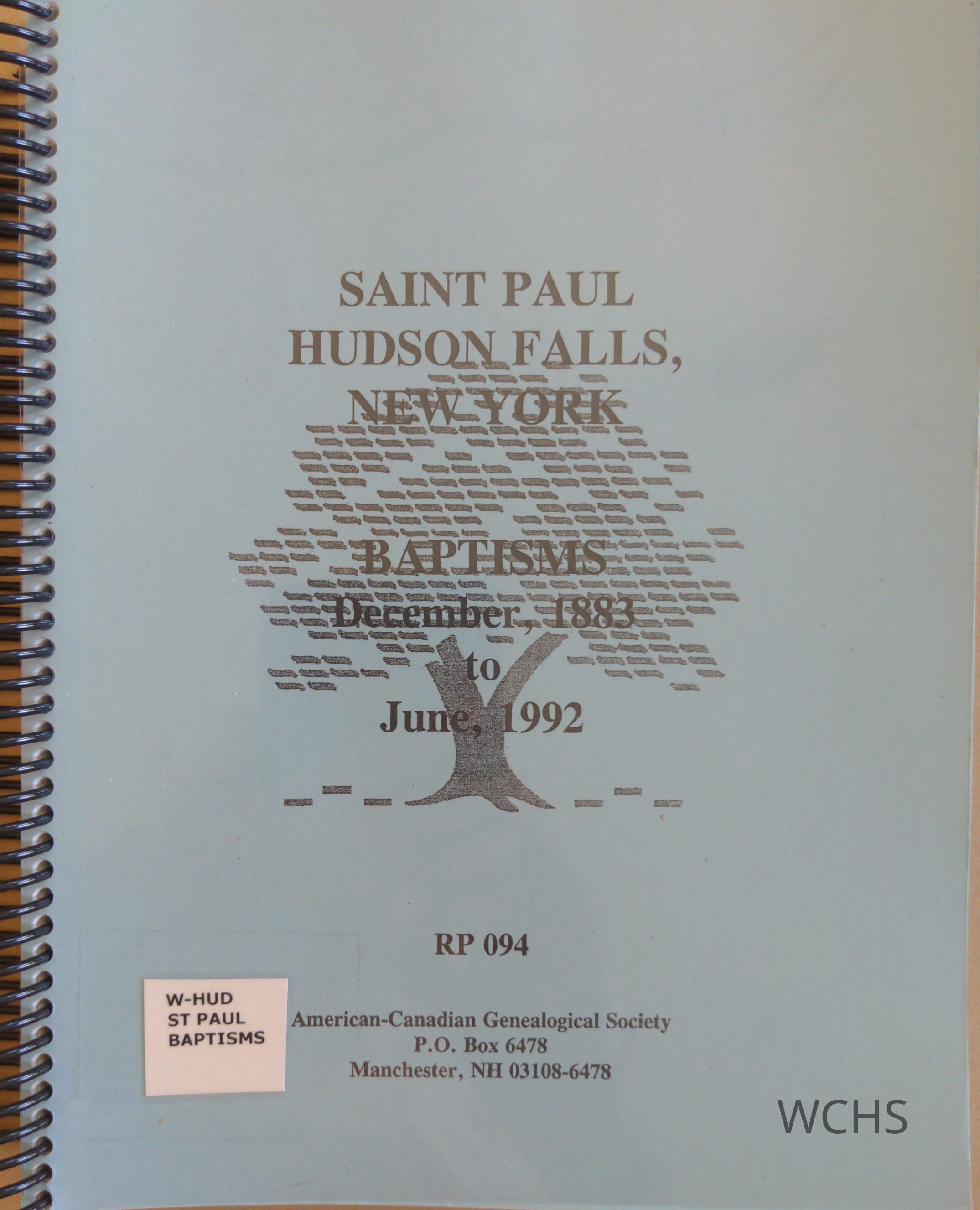 This work includes baptisms at Saint Paul's from December 1883 to June 1992. 271 pages, alphabetically organized, light blue spiral paperback.
