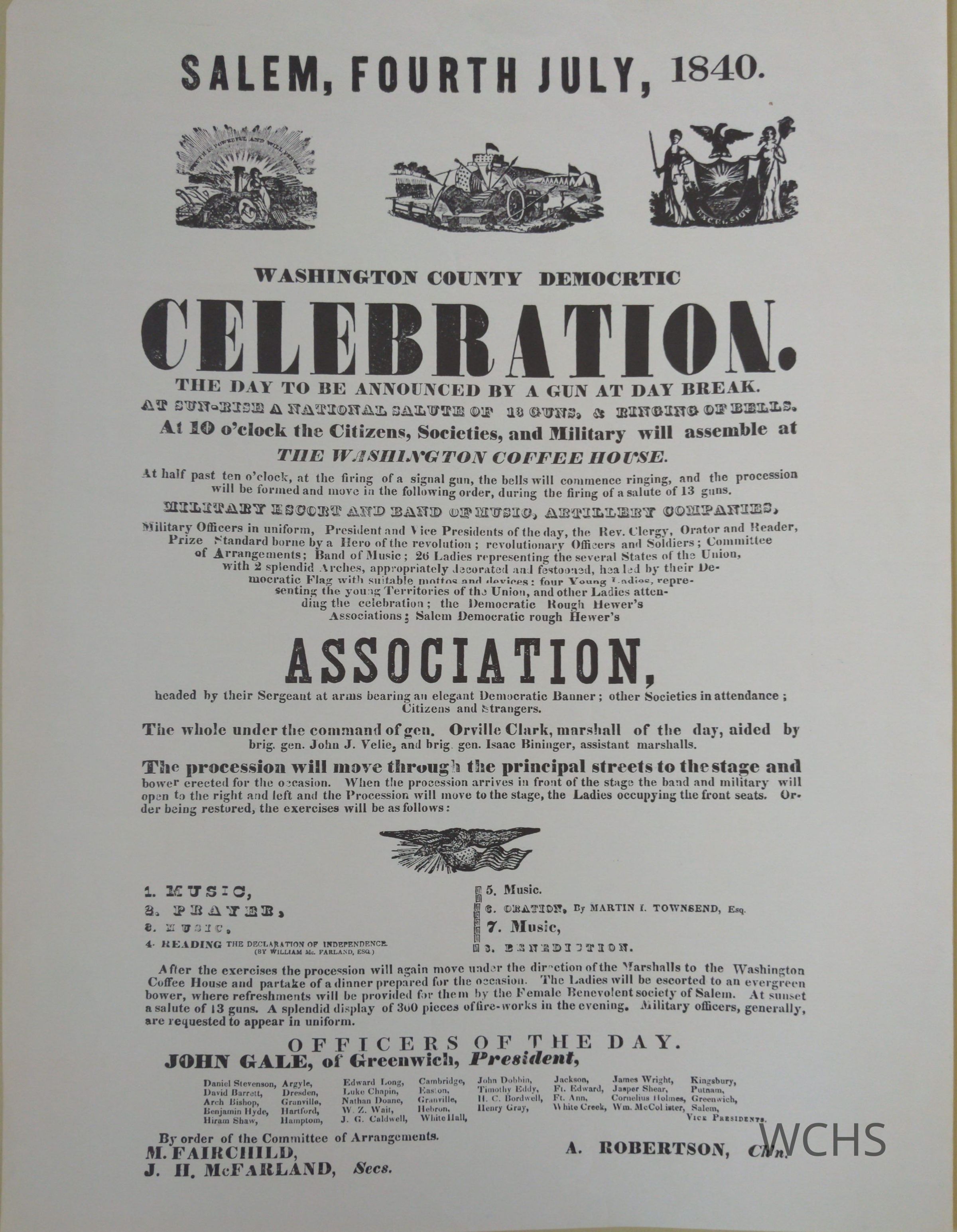 Copy of Salem Fourth Of July 1840 Poster advertising a "Washington County Democrtic Celebration"
