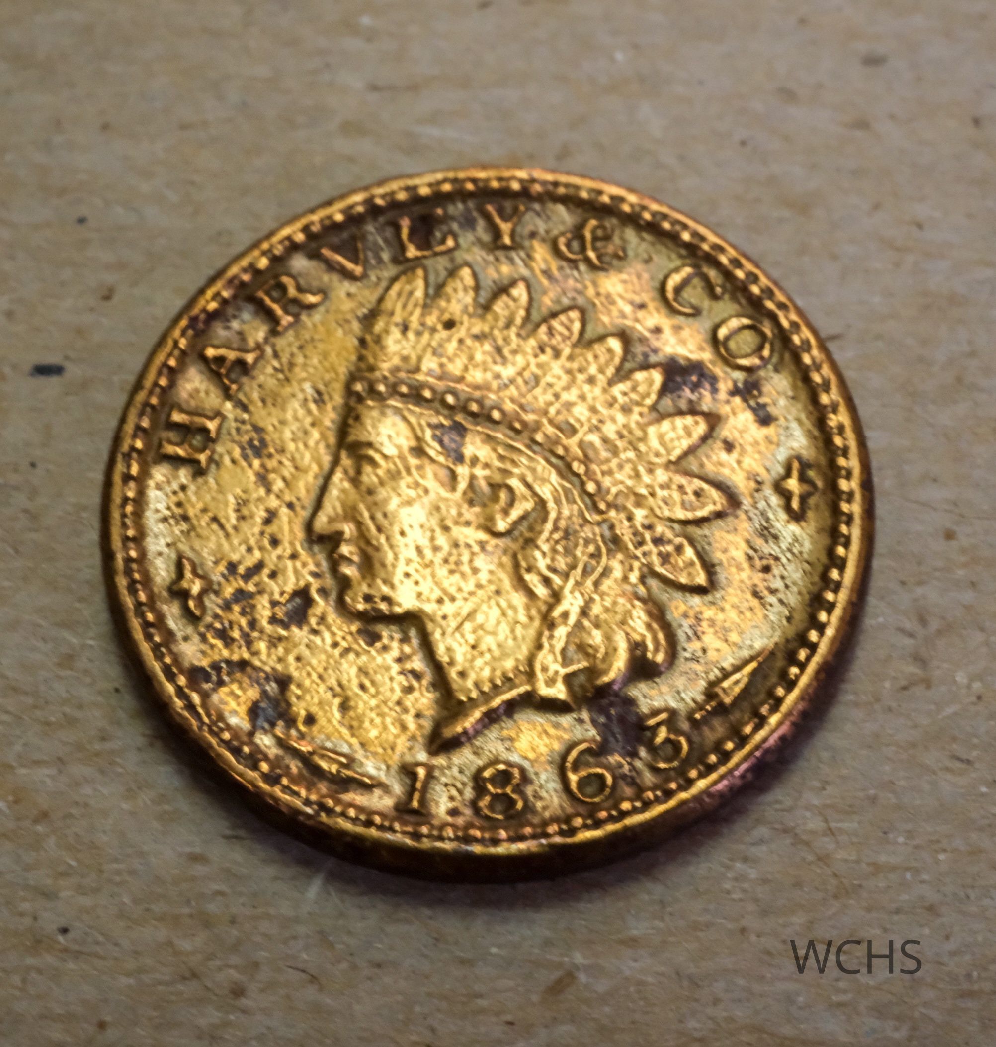 This was a gift from Ray Evans of Hudson Falls NY. "Harvey & Co," and an Indian head are on one side: the other side has "General Store", "1864",