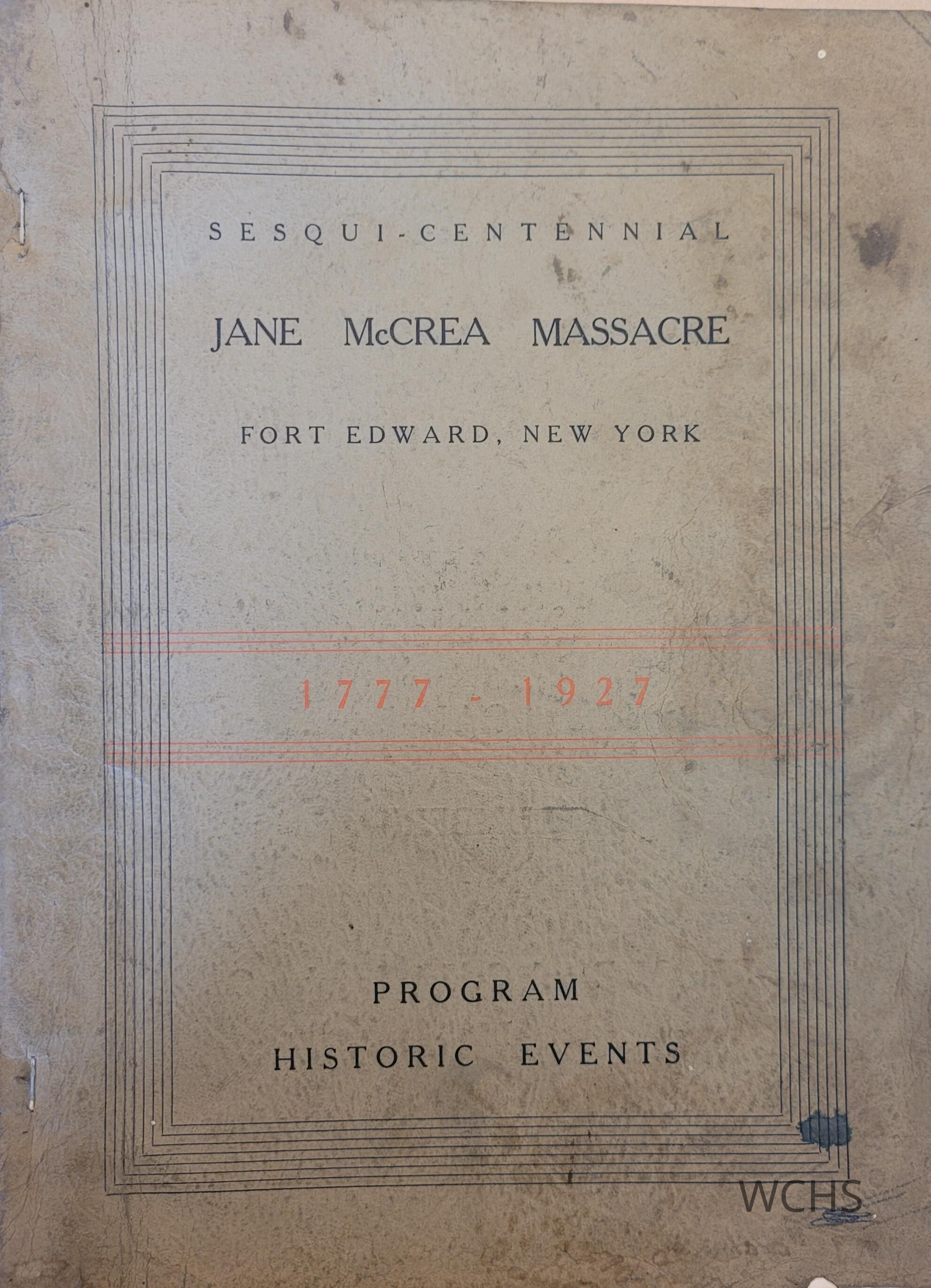Sesquicentennial: Jane McCrea Massacre, Fort Edward, New York: Program - Historic Events 1777-1927Entry/Object ID