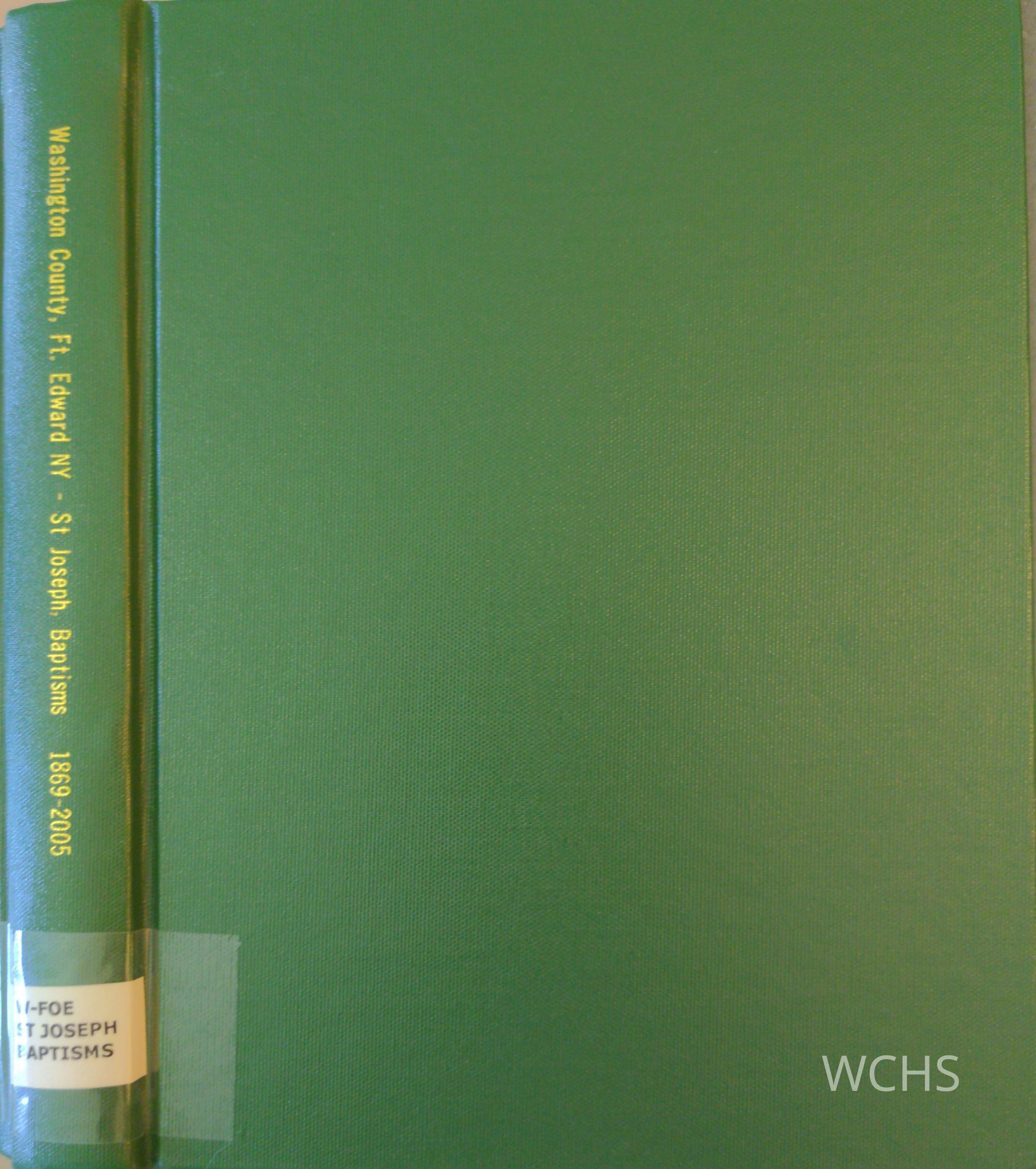 This volume includes baptisms from November 1869 to July 2005 at St. Joseph, Fort Edward, New York