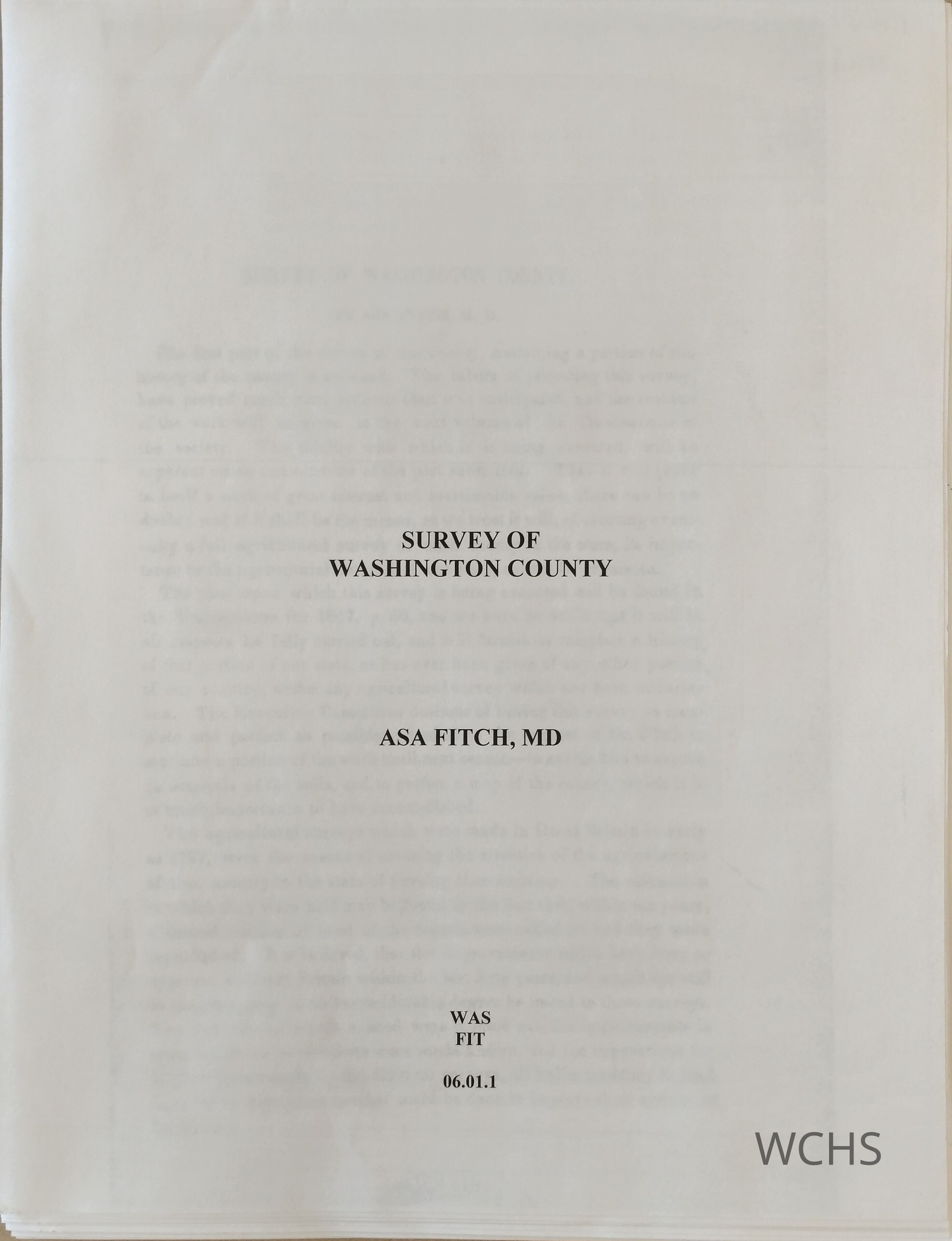Survey of Washington County: A Historical, Topographical & Agricultural Survey of the County of WashingtonEntry/Object ID