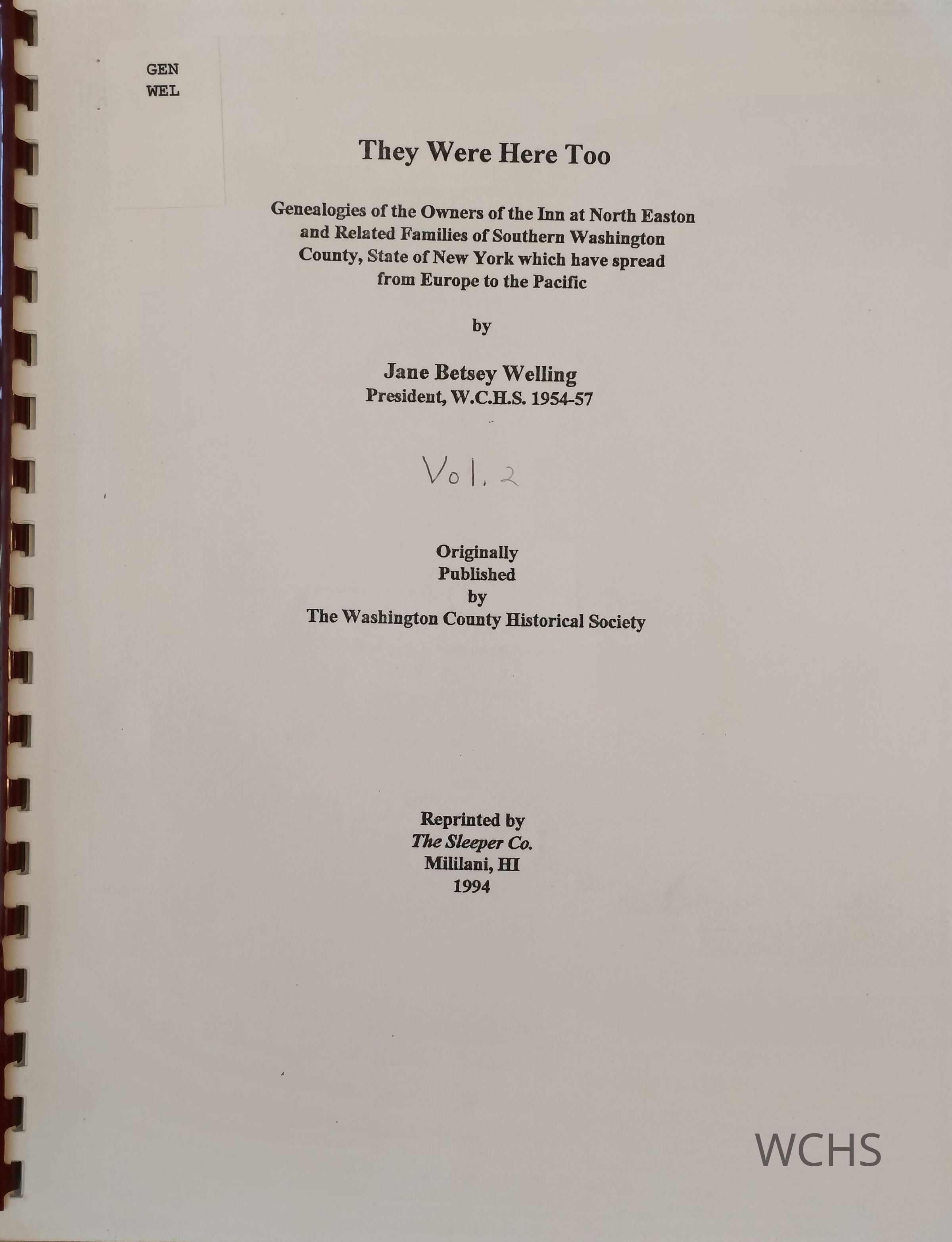 Index to Vol. 2 of They Were Here Too. Genealogies of the Owners of the Inn at Easton Corners and Related Families of Southern Washington County and Environs, State of New York