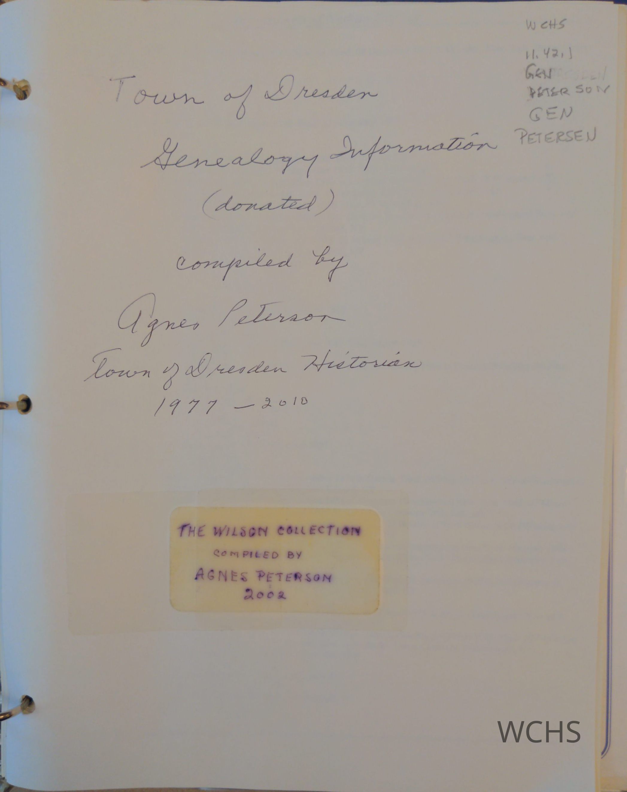 Descendants of Nathan Rhodes. Also Ancestry pages for over 100 families. Town of Dresden Genealogy Information compiled by Agnes Peterson, Dresden Town Historian.