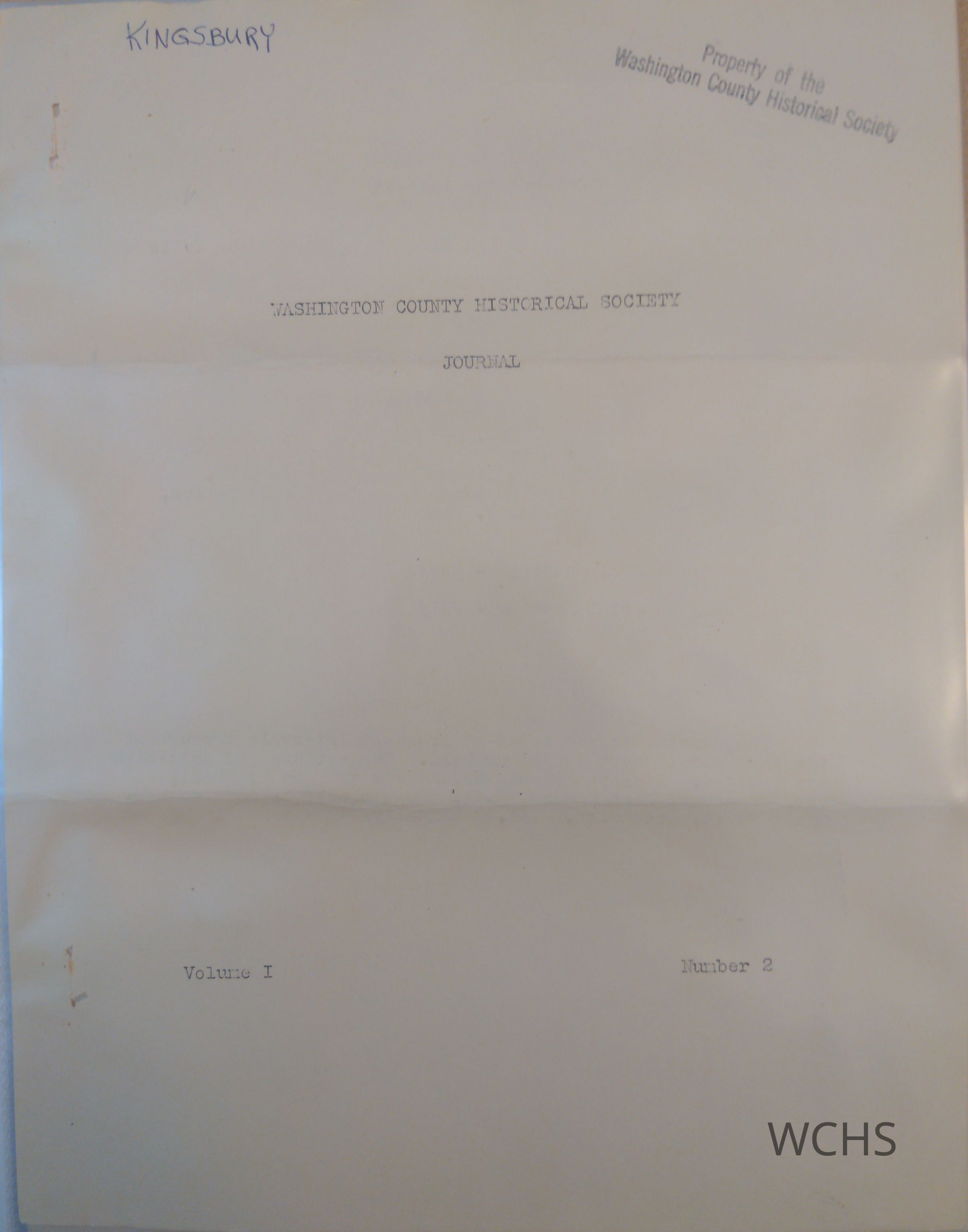 Volume I, Number 2 edition of Washington County Historical Society Journal. This edition is typewritten.