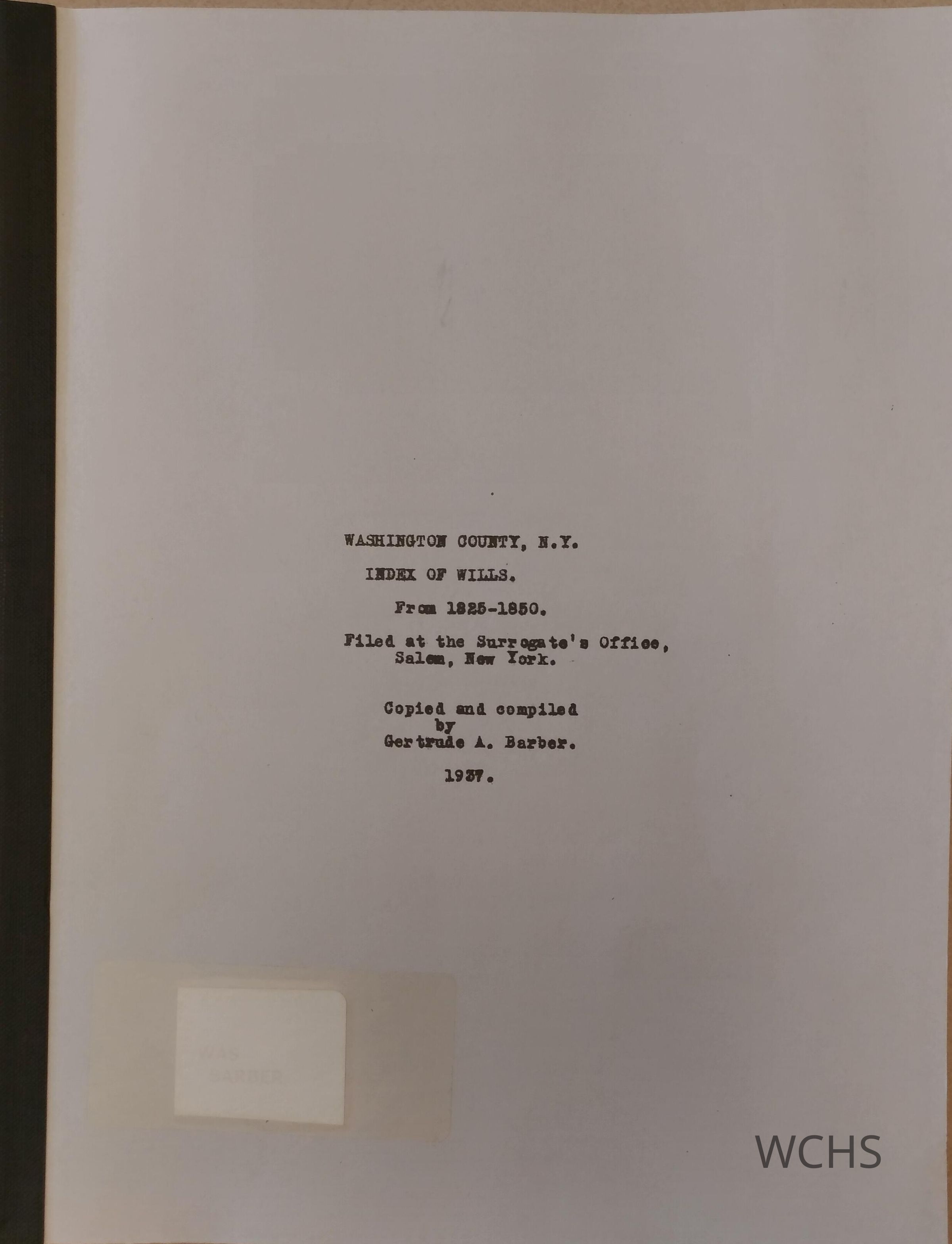 Index of wills of Washington County, NY from 1825 to 1850. Listed chronologically by dates of probate. No alphabetic index.