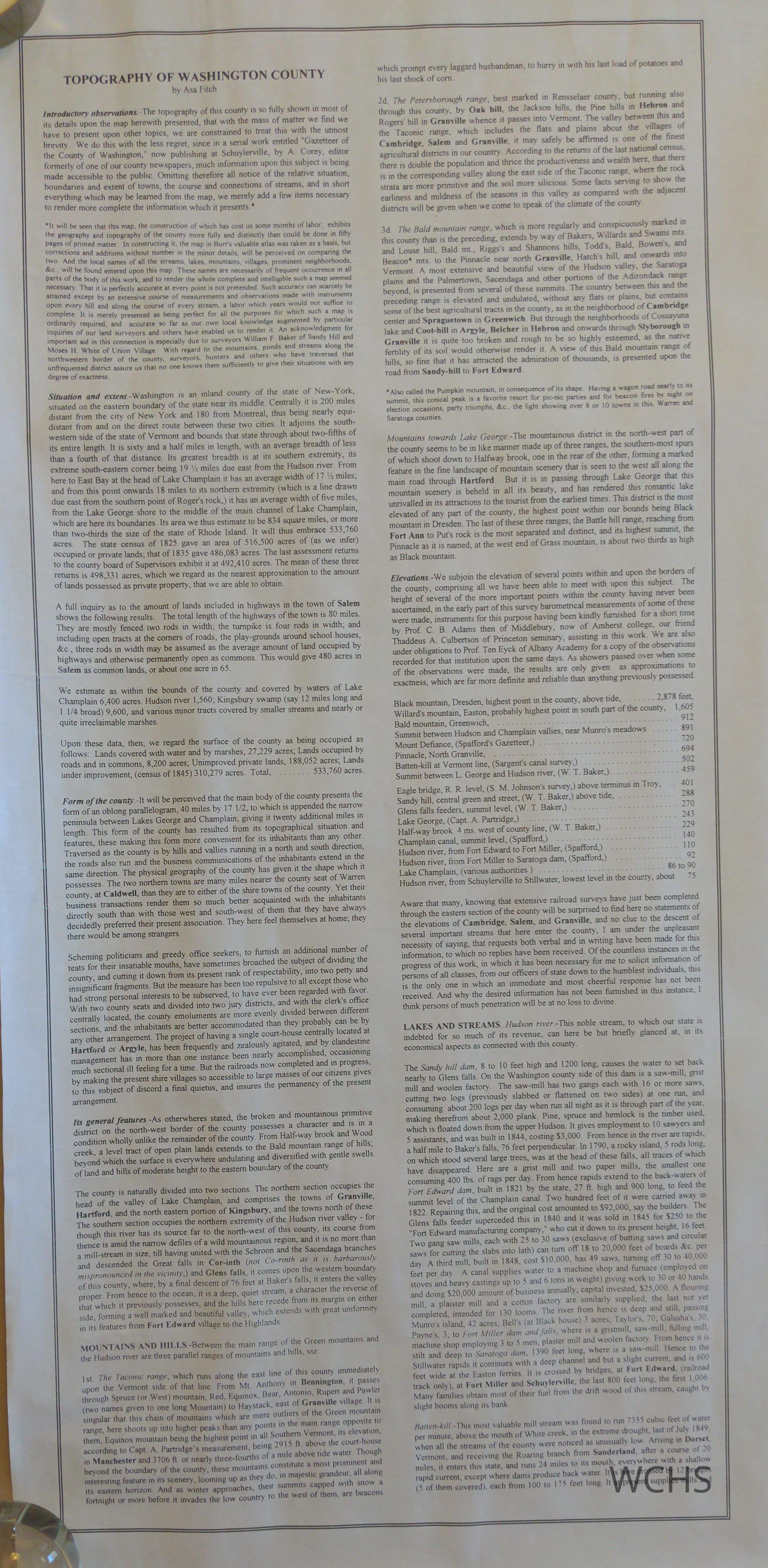 This map was originally produced by Asa Fitch, and has much text about the topography and history of the county. B&W, 18" X 24", Topographical.