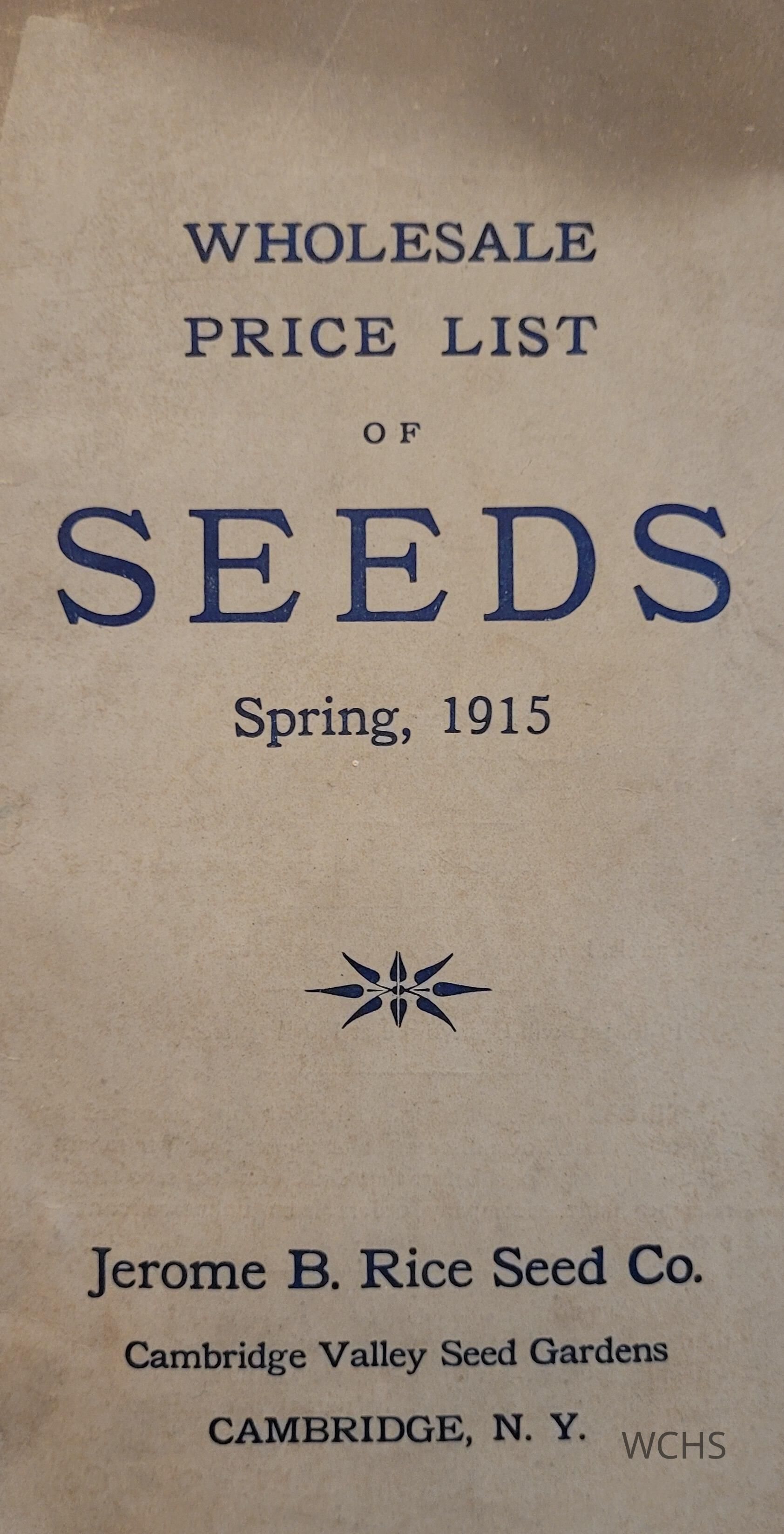Wholesale Price List of Seeds Spring, 1915 of the Jerome B Rice Seed Company. Cambridge Valley Seed Gardens. Cambridge, N.Y.