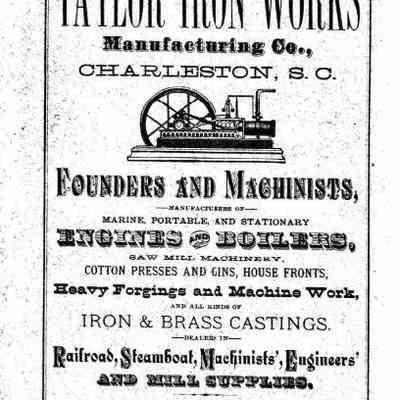 File contains description of Charleston Iron works, with photograph, from "Resources & Attractions of Charleston" (ca. 1898); illustrated advertisement from business directory (source not documented).