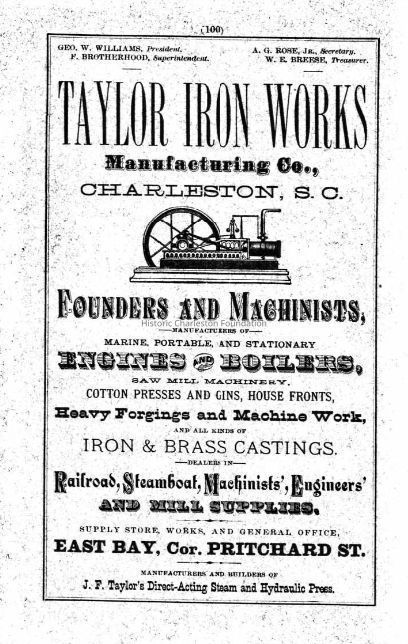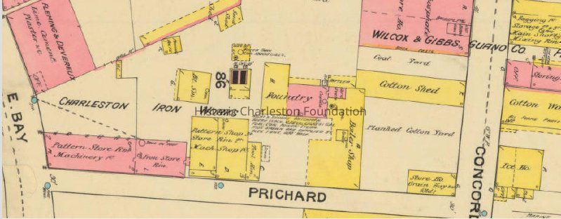 Location of Charleston Iron Works, makers of engines, boilers, and machinery, and suppliers of iron and steel.