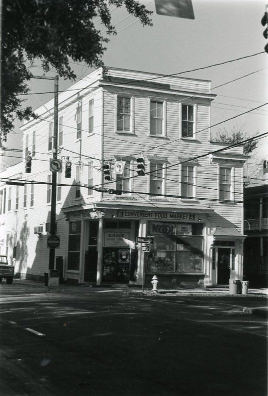 Constructed ca. 1850. At the time of the Civil War this three-story late-Greek Revival store building was owned by a German grocer named Peter Christopher Schroder, who lived on the floors above. Italianate style alterations from the late-19th century included the removal of the southeast corner for a typical Charleston store entry with a cast-iron column. Later occupied by the Doscher family as a grocery store, it served as the forerunner for a family business that expanded to a supermarket chain still in existence. (Poston, Buildings of Charleston.)Collection