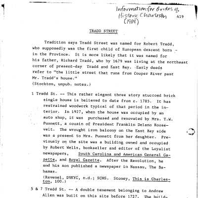 1 Tradd Street (Thomas Barksdale House)Entry/Object ID