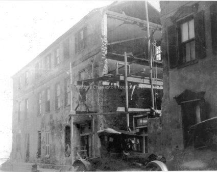13: Northwest corner of building showing demolition at rear of building. Portion of 3 Tradd Street at left with car parked in front.