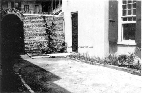 Current residents of 1 Tradd Street, Harriet and George Williams, loaned reprints to April Wood for scanning. Photos had been collected by Laura Gertrude Roosevelt Punnett (cousin of FDR), who purchased the building in 1927. See SC Historical Society description and historical note.Copyright
