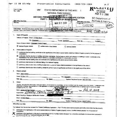 Three files contain documentation of the easement on the property including related correspondence and Confirmation of Understanding; Part I certification (National Register); easement appraisal report; historical research (scant); entry from 1973 SC Architectural Inventory; Sanborn Maps (1884, 1888, 1902, 1951).