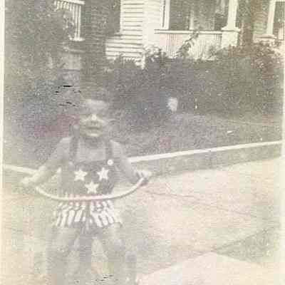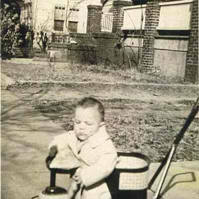 Photo 5: View of 10 Sutherland Avenue (partially visible at right) and 12 Sutherland Avenue (barely visible at left). Boy on tricycle in the foreground. Dated ca. 1950s.