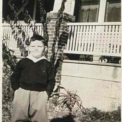 Photo 13: View of 12 Sutherland Avenue. Boy stands on front lawn in foreground. Dated 1944.