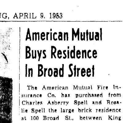 File contains newspaper articles (1953-1997); excerpt from This is Charleston showing photo of the original building that was demolished for the construction of American Mutual Fire Insurance Co. building.Collection