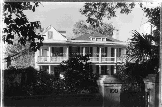 Constructed ca. 1820. Honore Monpoey, a wealthy grocer, built a section of this 2½ story stuccoed brick house on a large lot that formerly stretched to the Bennett Mill Pond. Placed at a considerable distance from the street, the western part of the house was a typical Charleston single house in plan. He lived here until the 1850s, but after the Civil War the house passed through several merchant families. Monpoey purchased two plantations on the Ashley River in the 1830s and rose from shopkeeper to a member of Charleston's planter gentry. In 1894 Herman Wilken bought the Bull Street property and probably was responsible for the Colonial Revival style addition with a hipped roof and wide front dormer to the eastern end, placing front piazzas across the entire structure.