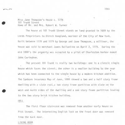 101 Tradd Street (Jane Thomson House)Entry/Object ID