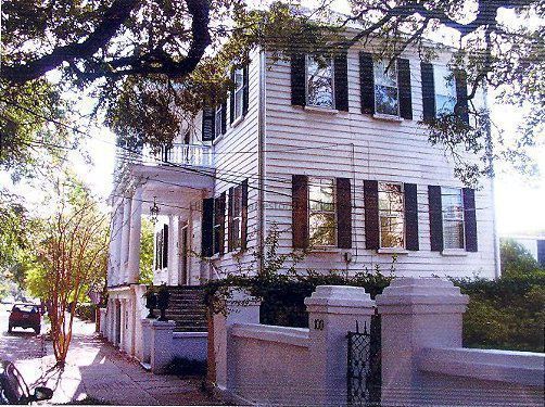 Color photograph of 104 Bull Street (Bennett--Prioleau House), ca. 2007, street elevation, corner view.Collection