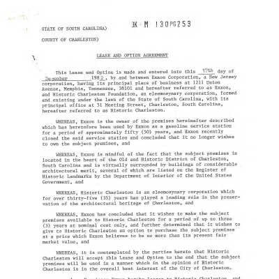 MEETING.108.01A: Files include FOHG house histories (1995, undated); other narrative histories; newspaper articles; draft of National Register Part I Certification application; "Prospectus for Preservation Center and Book Store"; "Resume of the Development of a Preservation Center for Historic Charleston Foundation"; historical research by Harlan Greene, including maps and plat; photocopies of photos; photocopy of sales contract between Exxon and HCF (12/30/1985); correspondence related to the formation and operation of the Preservation Center; Preservation Center Committee minutes; research on "future" preservation center; Preservation Center construction bids and details; miscellaneous information including signage, certificate of occupancy, projects, exhibits, merchandise, fundraising efforts, documentation of the discovery of wells; etc.