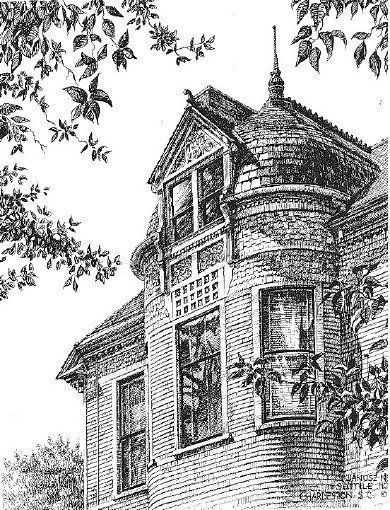 Constructed ca. 1891. S. W. Foulk an architect, Henry Oliver, builder. Samuel Wilson, one of Charleston's most progressive merchants of the postwar era, built this house in the emergent Queen Anne style in about 1891. It has been cited as probably the most extraordinary example of this architectural vocabulary in Charleston. S.W. Foulk, who also designed the YMCA building, undertook the planning for this building. Possessing numerous shapes and textures, the Wilson-Sottile House boasts a central hipped roof from which emanate several gable roofs as well as an additional hip to the west. The building features turrets on the southwest corner and on the front elevation, as well as double-tiered bowed porches with Queen Anne-style turned columns and elaborate jigsaw-cut and spindle-work trim. Fish-scale shingling on the turret and other locations provides some relief from the thin clapboarding of the principal walls of the structure. Stained-glass windows in the stair tower add ornament to the exterior and interior, while the latter features elaborate woodwork and an entry paved with minted tiles. A central hall with staircase provides entry on each side to downstairs rooms of varying shapes. The house was sold in 1912 to Albert Sottile, developer of most of the theaters in Charleston. The Sottile family gave the house to the College of Charleston in 1964.