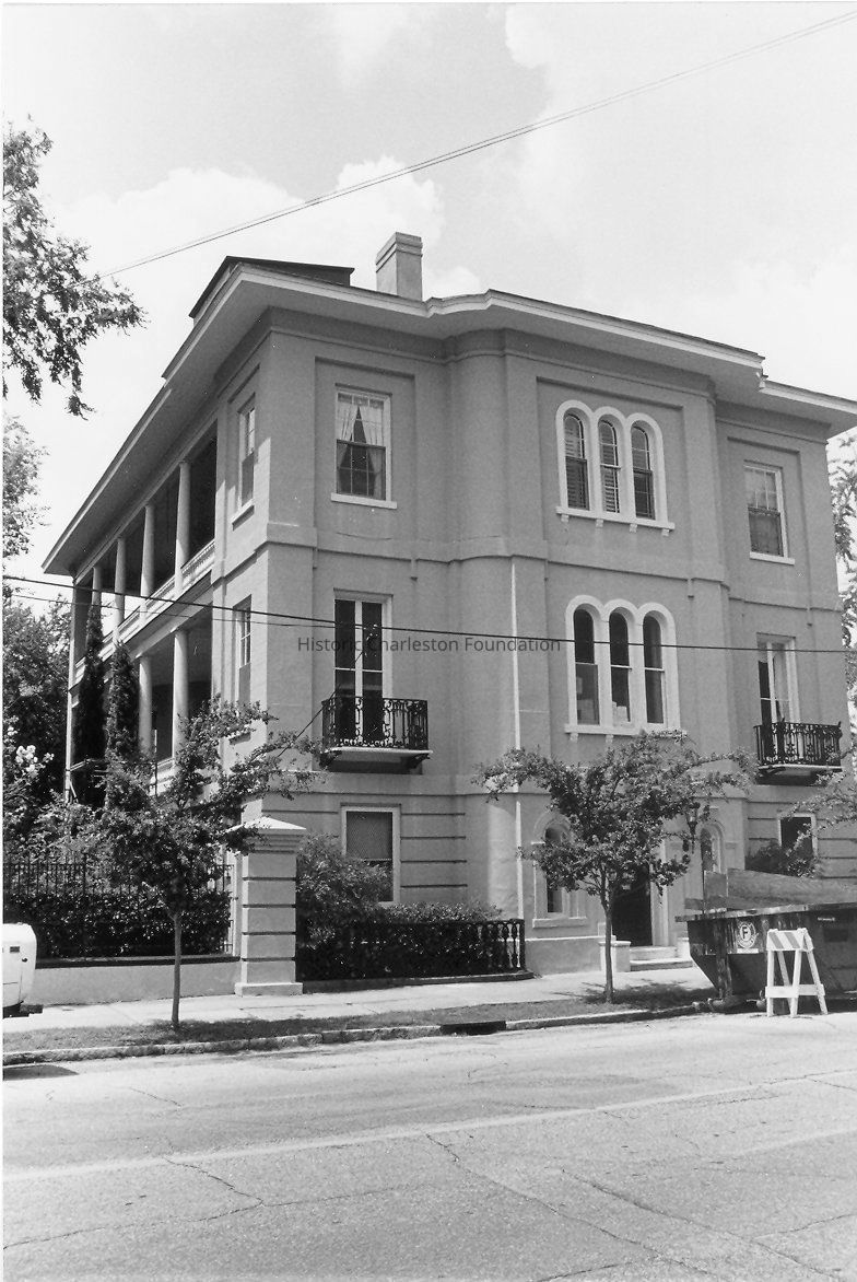 This large stuccoed brick house in the Italianate style was built by William C. Courtney between 1850-1860. It occupies the two middle parts of Town Lot No. 117 of the Grand Modell, which was enlarged at the back by Josiah Smith of 7 Meeting Street who filled in marshlands between King and Meeting Streets. (Source: Information for Guides of Historic Charleston, from Dwelling Houses of Charleston, p, 196)