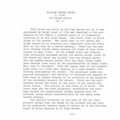 110 Broad Street (William Harvey House a/k/a Ralph Izard House)Entry/Object ID