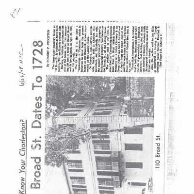 Broad Street, Easement Property, Historic buildings--South Carolina--CharlestonArchive Details