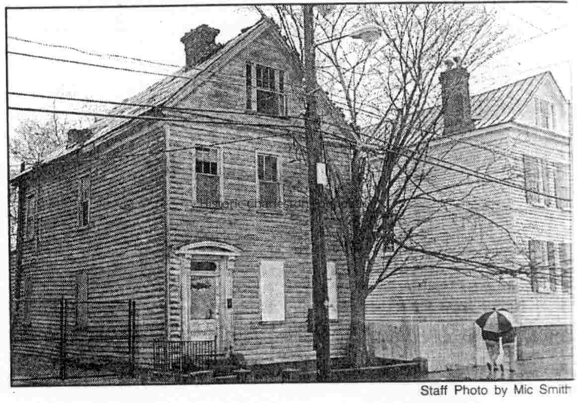 Three-story wood frame residential constructed possibly ca. 1870s, the building previously owned by the Charleston County School District, with a Category 4 rating on the city's historic building survey. The house was long-neglected and crumbling at the time the city of Charleston agreed to lease the property to a nonprofit group to be set up by the Clemson University Extension Service to be used as a "laboratory for Lowcountry urban living." No additional history on file.