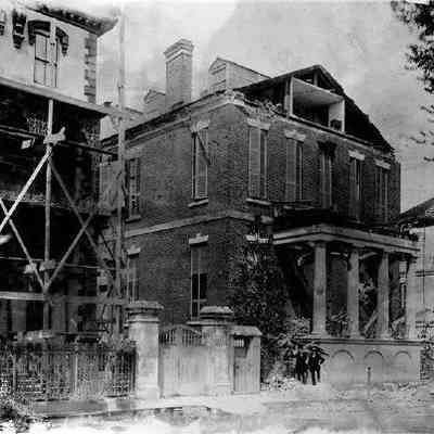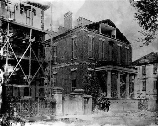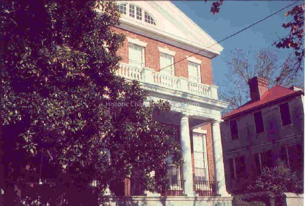 Constructed ca. 1829. Ralph Izard Jr. acquired this site before his death in 1824. Passing into his sister's estate, the property was sold to Col. Thomas Pinckney in 1829 with an "unfinished house." Pinckney, whose father owned 14 George Street, completed the present T-shaped, 2½ story brick dwelling, with construction assistance from the Horlbeck Brothers, by 1829. Standing on a high basement, which is supported on the interior by groin vaulting, a stone columned front portico projects from the tinted red brick facade. Marble lintels surmount the triple sash front windows and there is a gable roof with a lunette window in the transom. A plat of 1829 depicts the U-shaped line of dependencies, including stables, kitchen, and slave quarters, a portion of which survives. Pinckney spent the winter social season in this house, particularly in the upstairs parlor where satin damask curtains, rosewood sofas, Wilton carpets, and double chandeliers provided a grand space for the elaborate entertaining which characterized Charleston society. He served his guests from his extensive wine cellar in the basement. Pinckney kept most of his 190 slaves on his rice lands at Fairfield Plantation on the Santee River, where he spent the fall and early spring. He summered at Altamont, his farm in South Carolina's Pendleton district. The Pinckney family retained title to the site until 1866, when his daughter, Rosetta Ella Izard, sold it to the Roman Catholic bishop of Charleston. It has since remained as the residence for Charleston's bishops. The house is one of the finest examples of the Classical Revival style in the city.